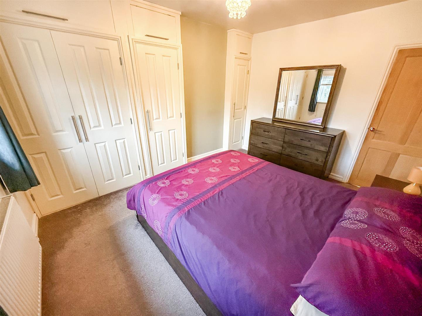 A bright king-sized room, having a radiator and window to the front overlooking the front garden towards All Saints Church and the Welsh hills beyond. Purpose-built wardrobes provide ample storage.