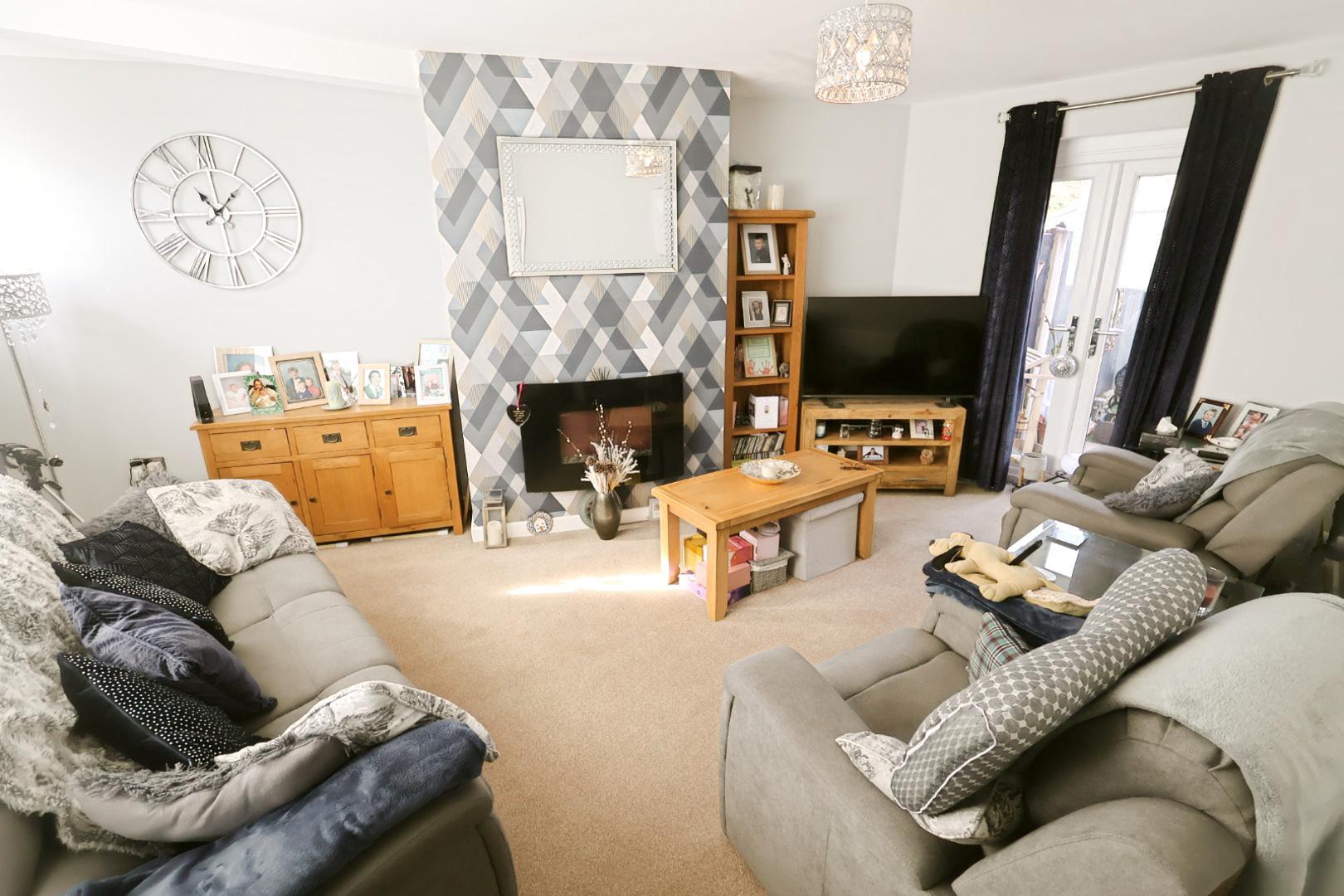 A well-presented three-bedroom home in an elevated position close to Wrexham city centre. The property offers a spacious living room with French doors to the garden, a modern fitted kitchen, ground-floor cloakroom, three bedrooms and a contemporary bathroom. Externally there are lawned front gardens and a low-maintenance rear garden with patio and artificial lawn.
