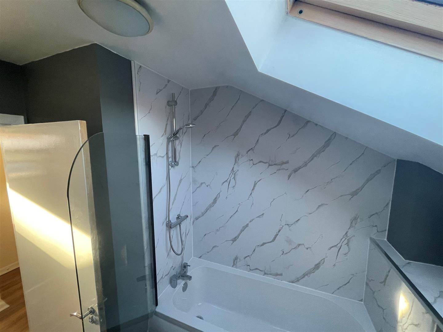 - STYLISH BATHROOM WITH WHITE THREE-PIECE SUITE AND SKYLIGHT