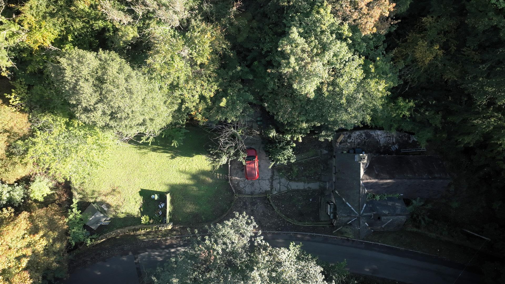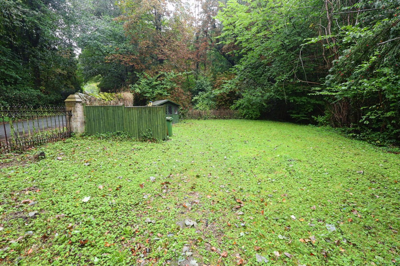 The property is approached through impressive ornate iron gates and matching railings, opening to ample off-road parking and a bridge over the river leading to the woodland. To the front is a substantial lawned garden with a timber shed and stone-walled boundary. Directly in front of the residence lies a scrub garden leading to a timber gate and an elevated concrete seating area overlooking the river.