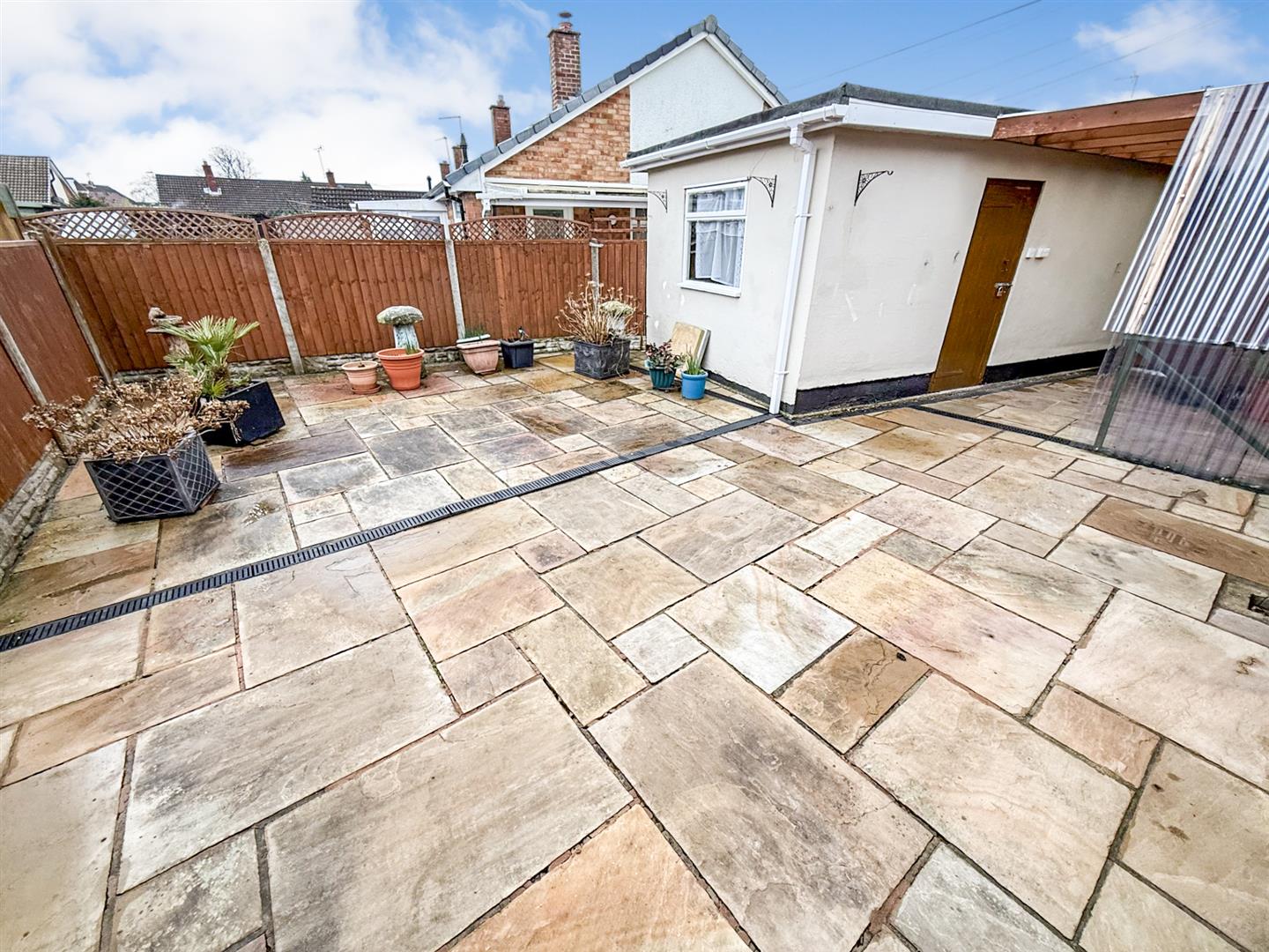 The fully enclosed rear garden is mainly paved with outside lighting making an ideal place to sit and relax. There is an outside tap and wooden gate giving access to the front. To the front of the property, it is mainly laid to lawn with a paved path leading around the property. A good sized tarmac driveway provides ample off road parking and leads to the garage. There is a covered area between the back door and access to the garage side door.