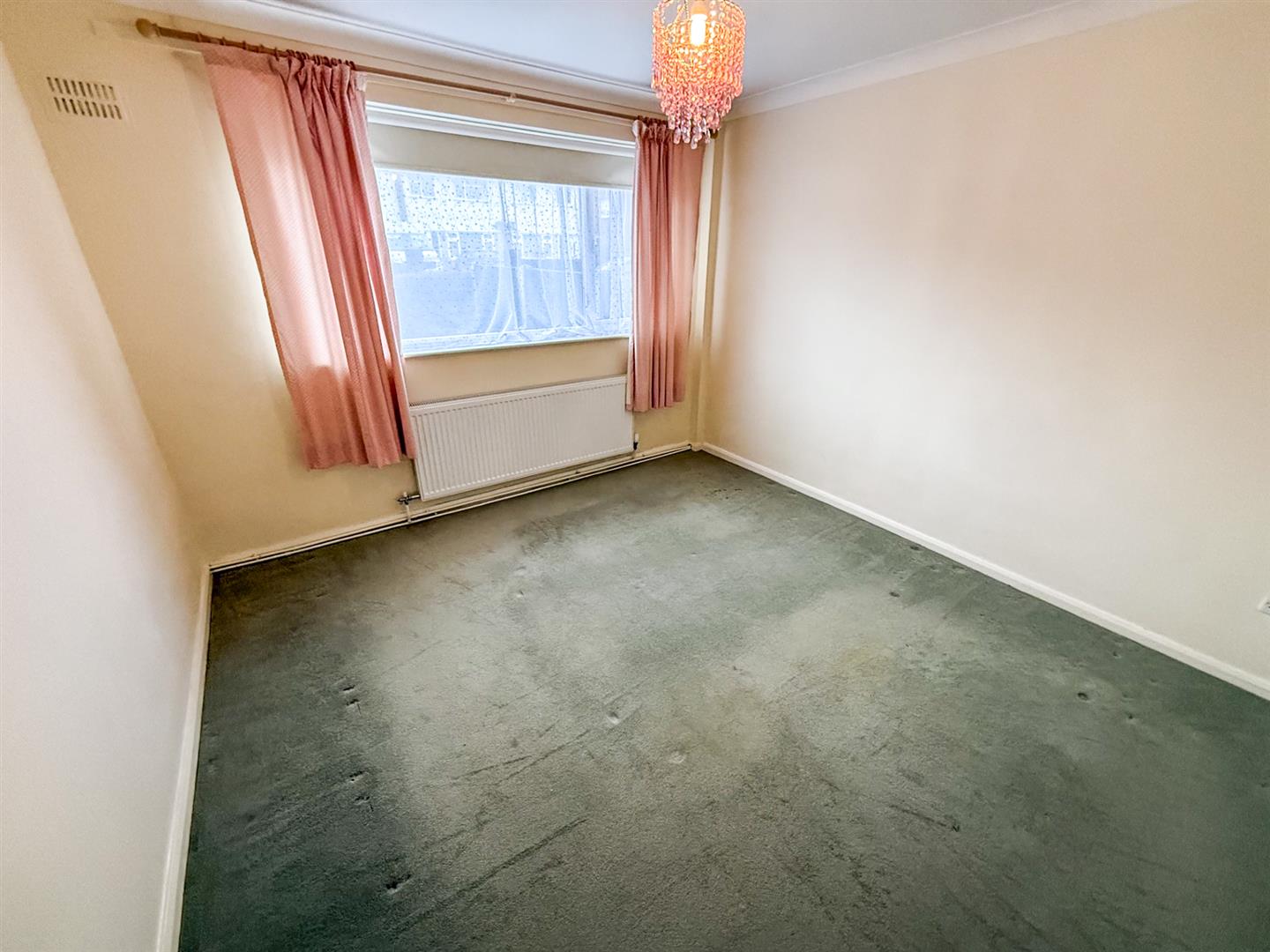 A double bedroom having a window to the front aspect, coving to the ceiling, radiator and TV point.