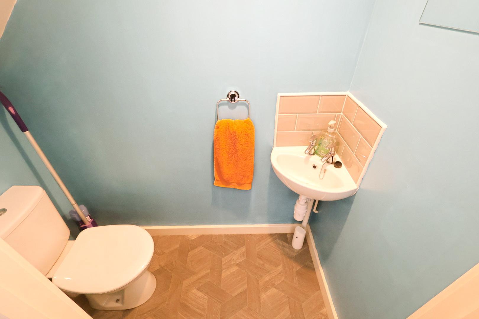 Fitted with a dual flush low-level WC and wash hand basin with tiled splashback. Includes an extractor fan.