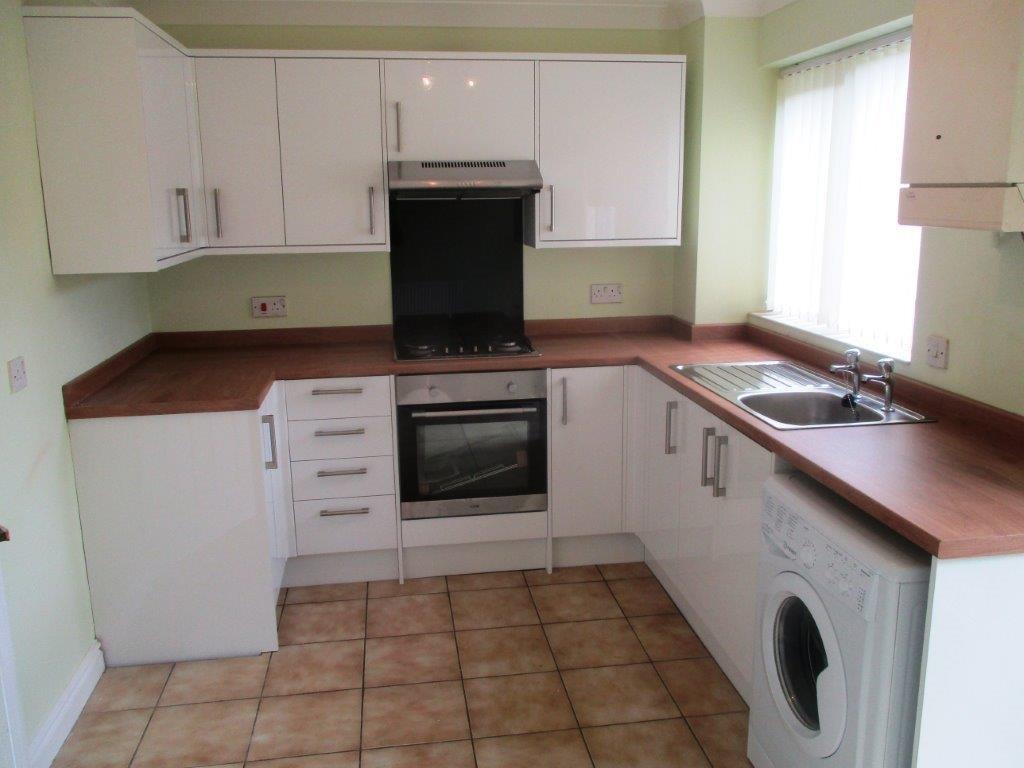 This semi detached property comprises Entrance Hall which gives access to the Spacious Lounge with laminate flooring, wall mounted electric fire and understairs store cupboard. Access through to the Kitchen/Diner with a recently fitted range of base and wall units which incorporate gas hob and electric oven, together with under counter washing machine, space for fridge freezer. Dining Area has tiled floor throughout and sliding patio doors opening to the rear garden. Staircase leads to the first floor landing. The Master Bedroom has En-Suite Shower Room. Rear Bedroom 2. Bathroom with wash hand basin, w.c. and bath with shower. To the front there are two private car parking spaces together with a small lawned area and store facility. Side gated access to the rear garden which provides patio area and lawned area.