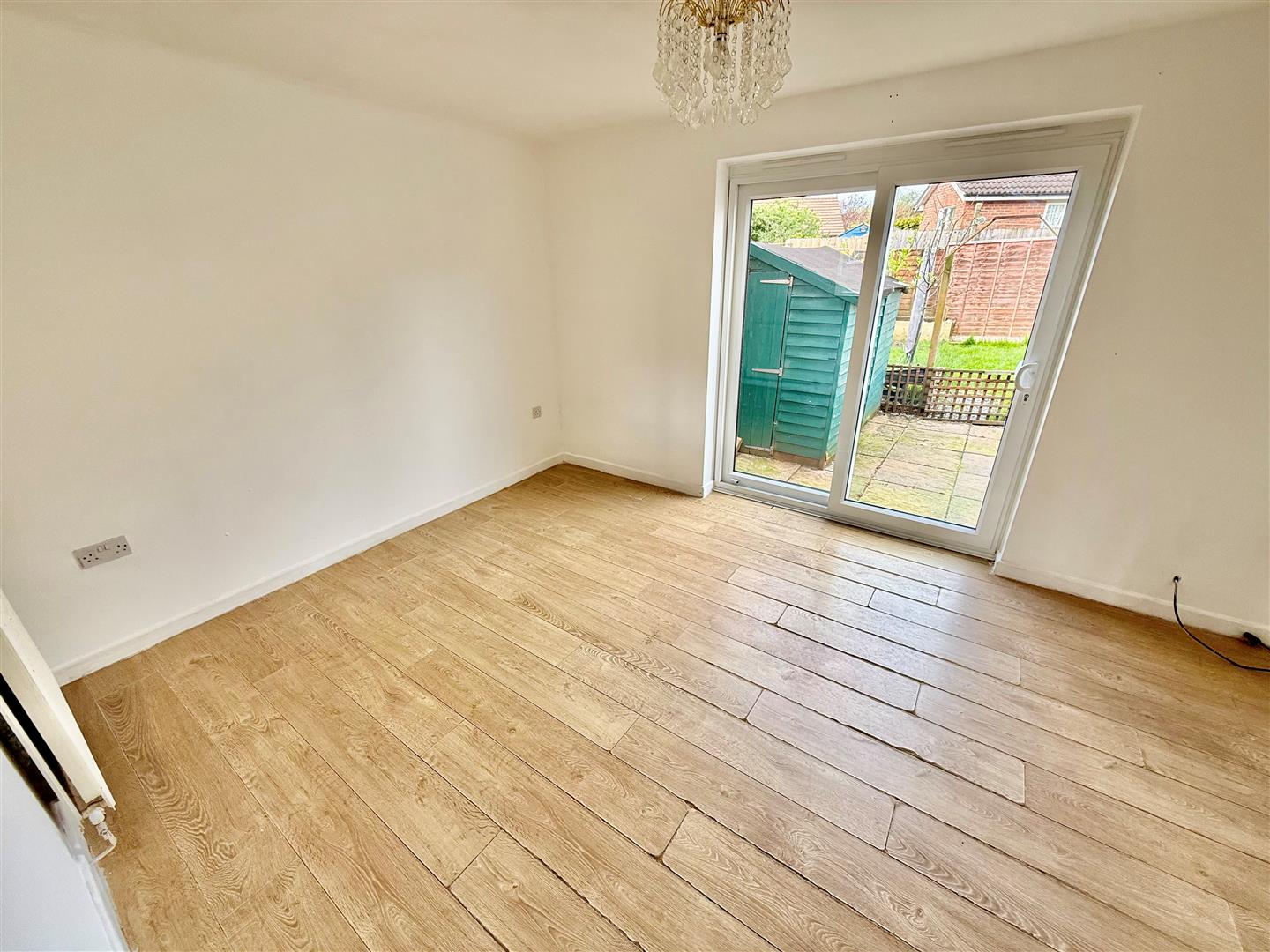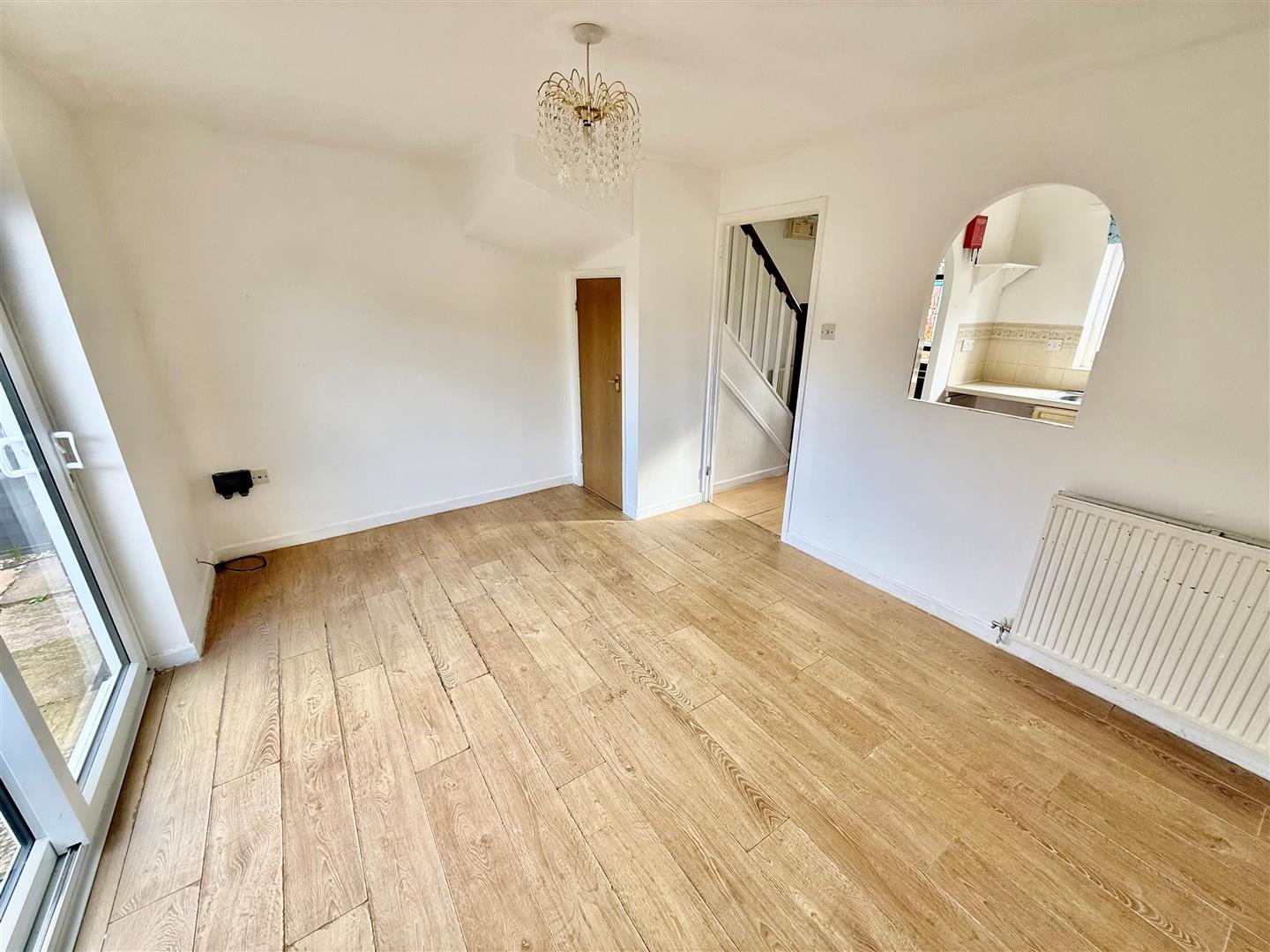 A spacious lounge with patio doors to rear opening into the garden, under stairs storage cupboard, a radiator, laminate flooring and an archway 'window' to the kitchen.