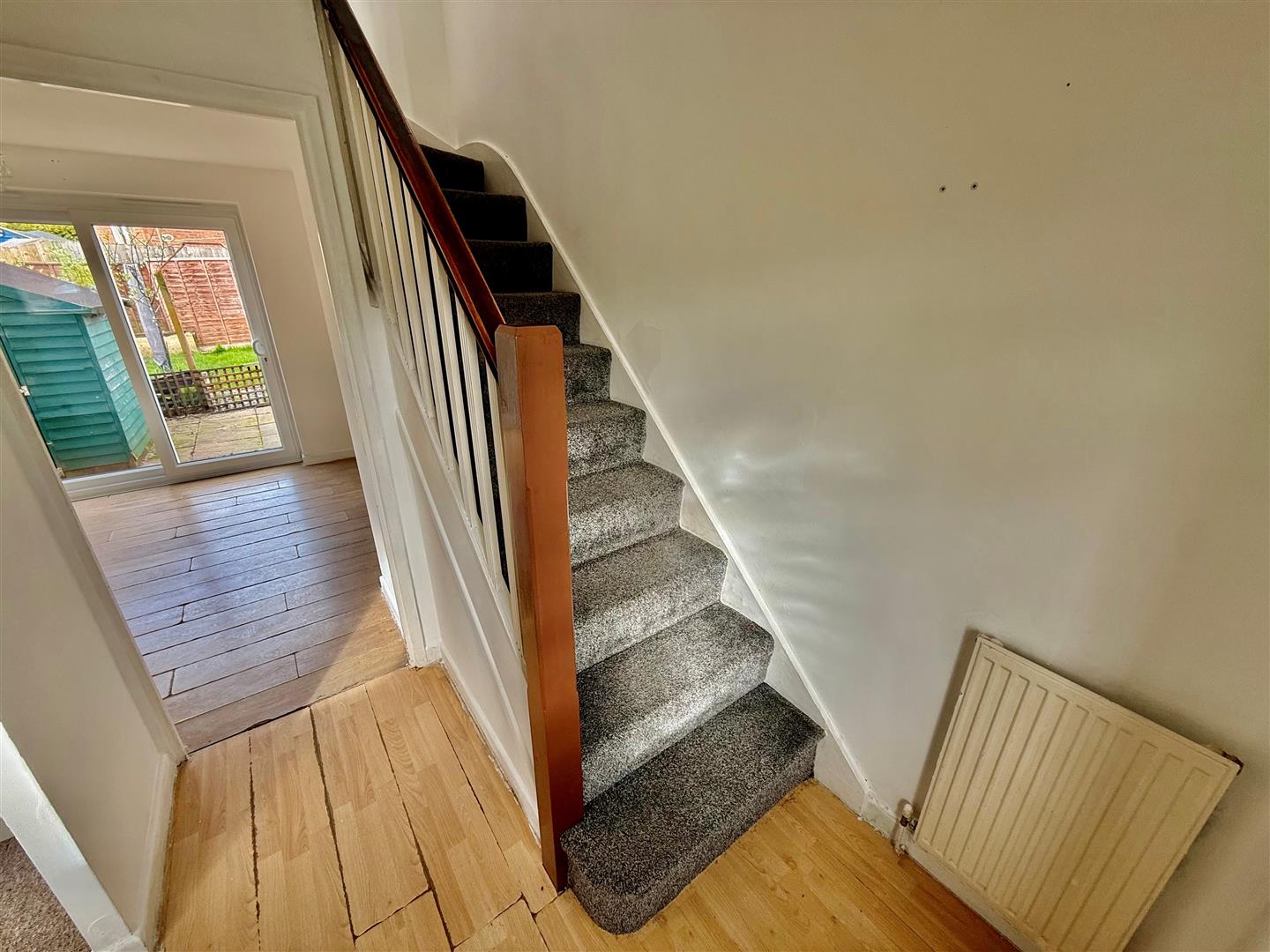 With a part glazed door to the front, laminate flooring, an opening into the kitchen and a door to the lounge. Stairs lead to the first floor.