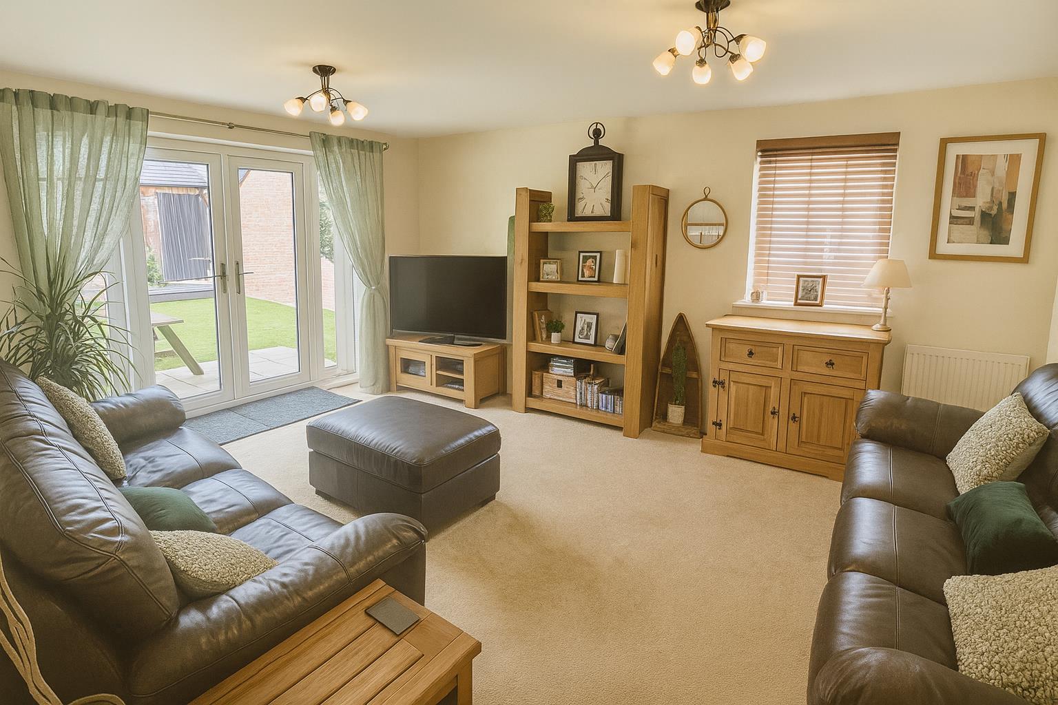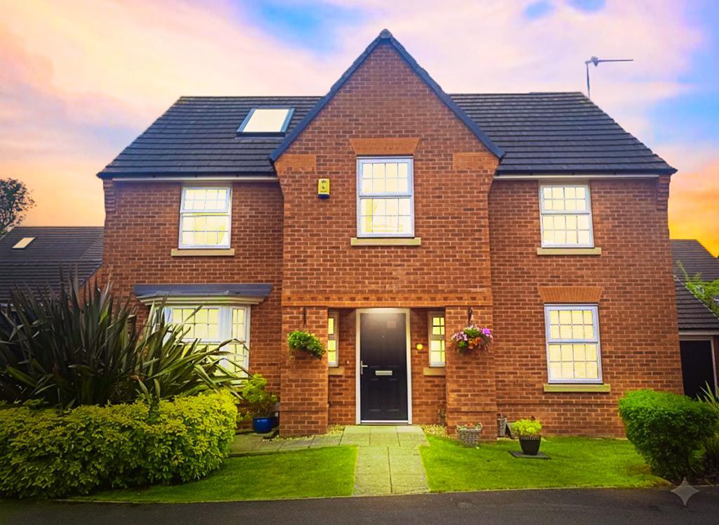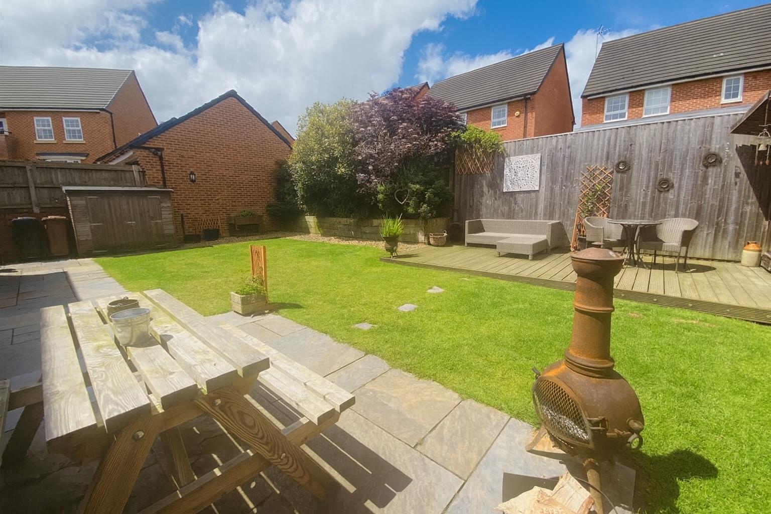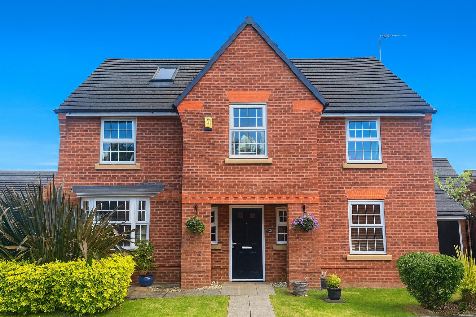 VIRTUAL TOUR AVAILABLE... Situated in a modern development at the heart of this highly desirable village, this detached family home offers light, spacious, and versatile internal accommodation. It benefits from gas central heating and UPVC double glazing. The internal accommodation briefly comprises a generously sized entrance hall with a cloakroom WC, a living room with French doors opening to the rear garden, a sitting room, a study, and an open-plan kitchen/dining room fitted with gloss white wall, base, and drawer units, along with an adjoining utility room. The first-floor landing provides access to the family bathroom and four double bedrooms. The principal bedroom features a dressing room and an ensuite bathroom, while the guest bedroom has an ensuite shower room. Externally, the front of the property boasts a lawn and a well-stocked shrub garden, with a driveway offering ample off-road parking leading to a detached double garage with electric roller doors. Timber access along the side of the property leads to the well-presented rear garden. The garden features a central lawn, sleeper-raised planters, a paved patio running along the rear of the property, and a decked patio area with a timber house situated at the rear.
