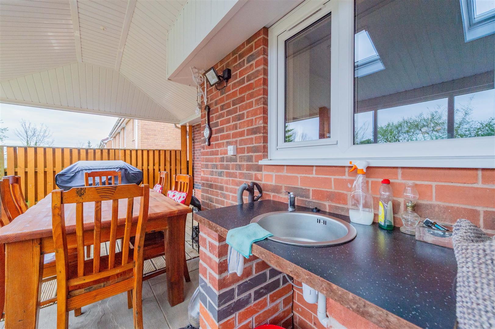 This large covered outside space is perfect for entertaining and is a perfect extension to the living accommodation of the house. Having lots of space for dining and relaxing with an outside wash hand basin with hot and cold tap and fully covered to three sides making it a useable space all year round.