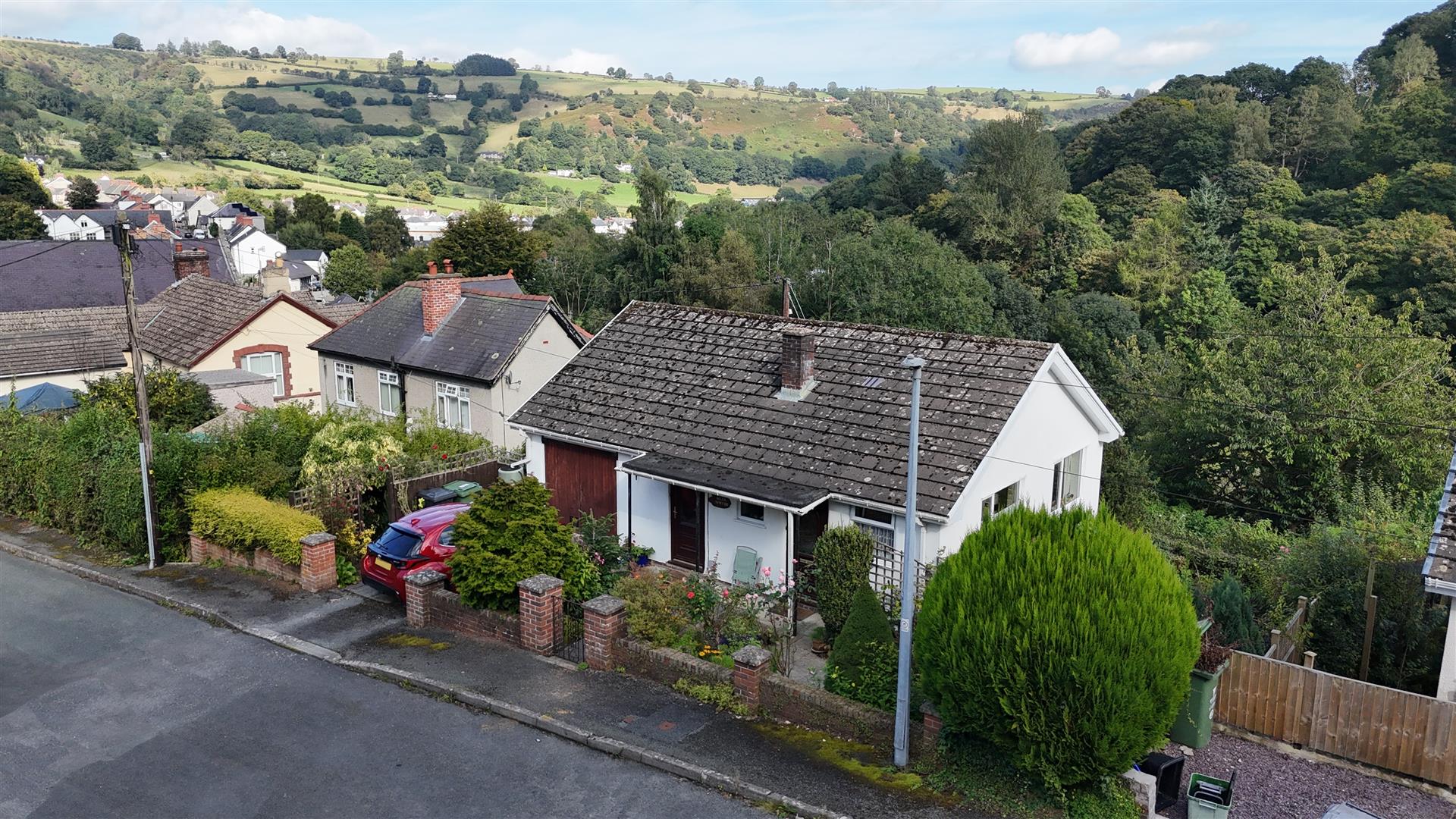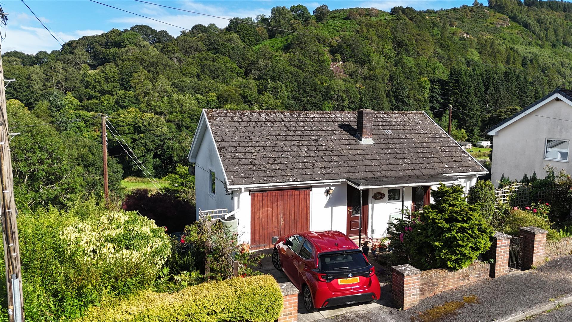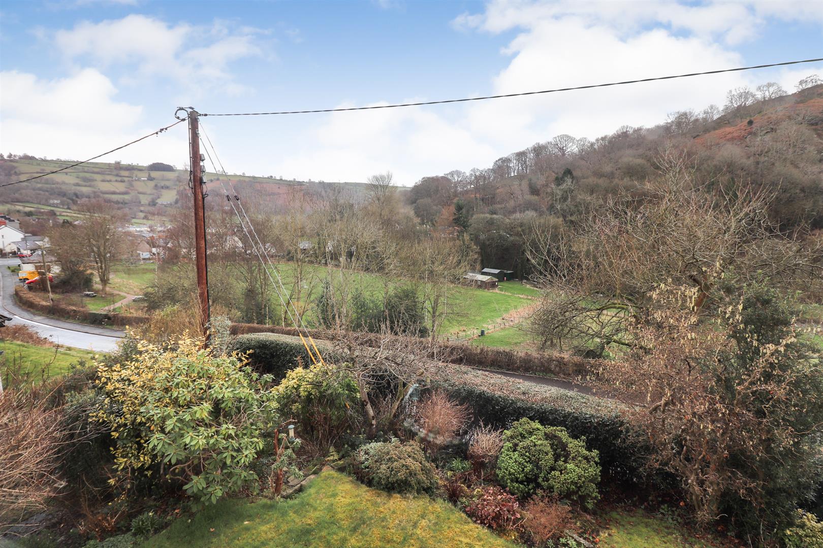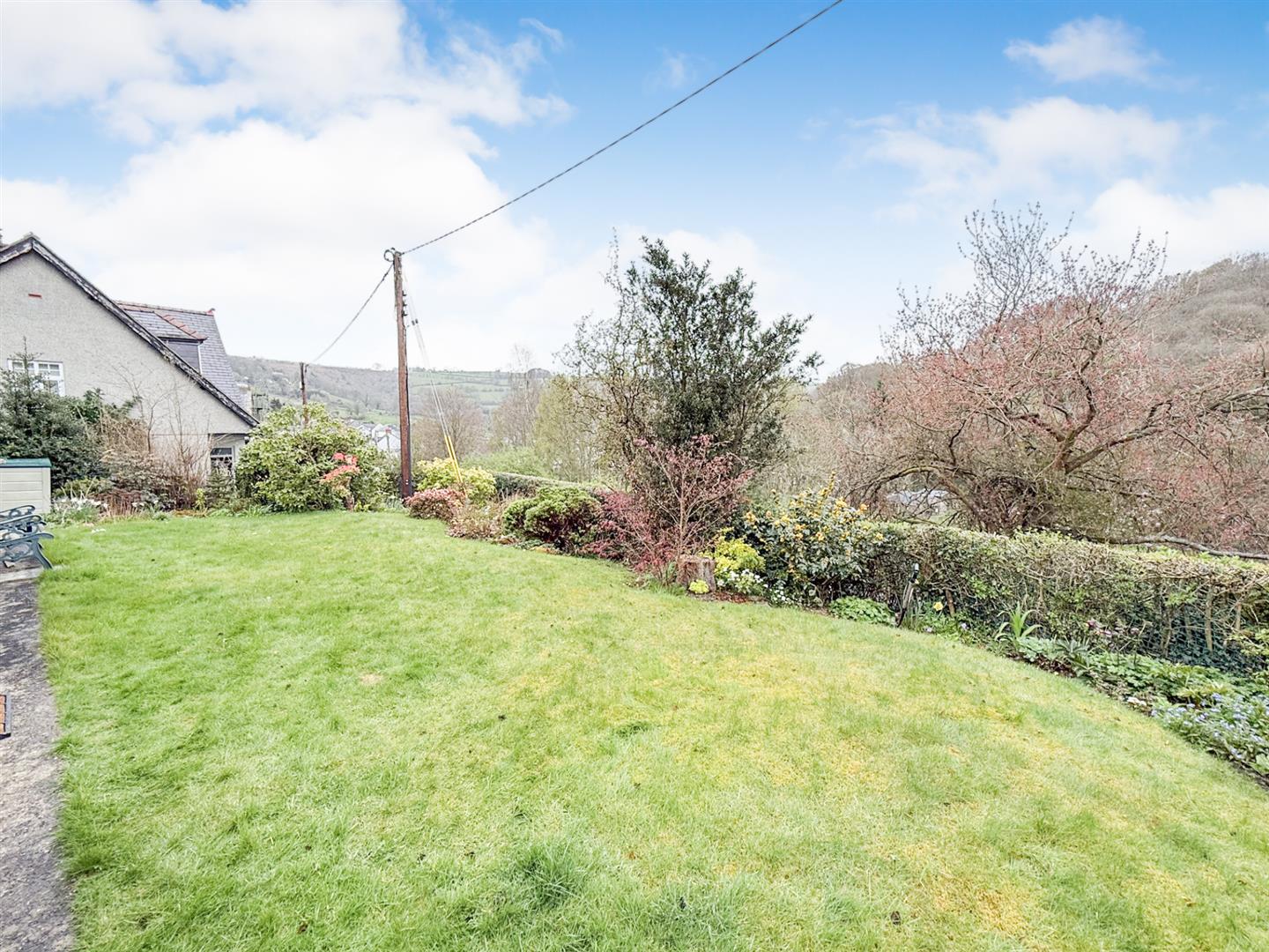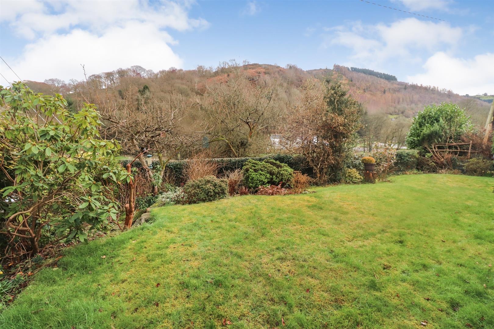 Steps lead down to the rear garden which ins mainly lawned and shrubbed. There is also a patio area taking in the stunning views of the Ceiriog valley and beyond.