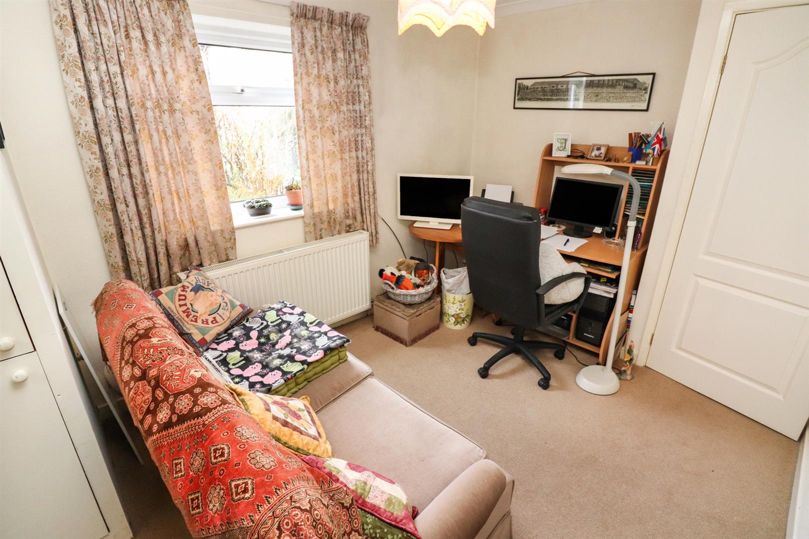The fourth bedroom is currently used as a study and hobby room and has a window to the side and a radiator.