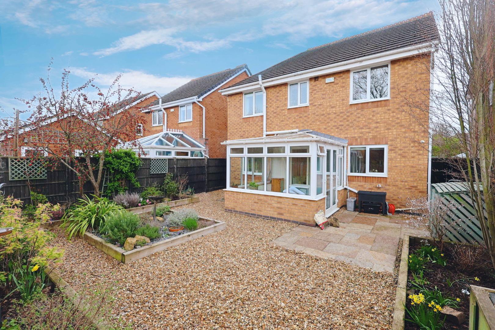 Forming part of a modern development, this detached four-bedroom property offers easy access to both Wrexham and Chester, along with local motorway networks and a range of everyday amenities. Available with no onward chain and benefiting from uPVC double glazing and gas central heating, the accommodation briefly comprises an entrance hall, a living room with feature fireplace leading through to a dining room, and a well-appointed kitchen/breakfast room with access to the conservatory. To the first floor, there are four bedrooms, including a principal bedroom with a feature arched window and en-suite facilities, as well as a contemporary family shower room. Externally, the property offers ample off-road parking to the front, positioned in front of a single garage and alongside a golden gravel and shrub garden. Timber gated side access leads to a beautifully presented rear garden, again featuring golden gravel, a paved patio area, and sleeper-raised beds with a variety of shrubs and trees.