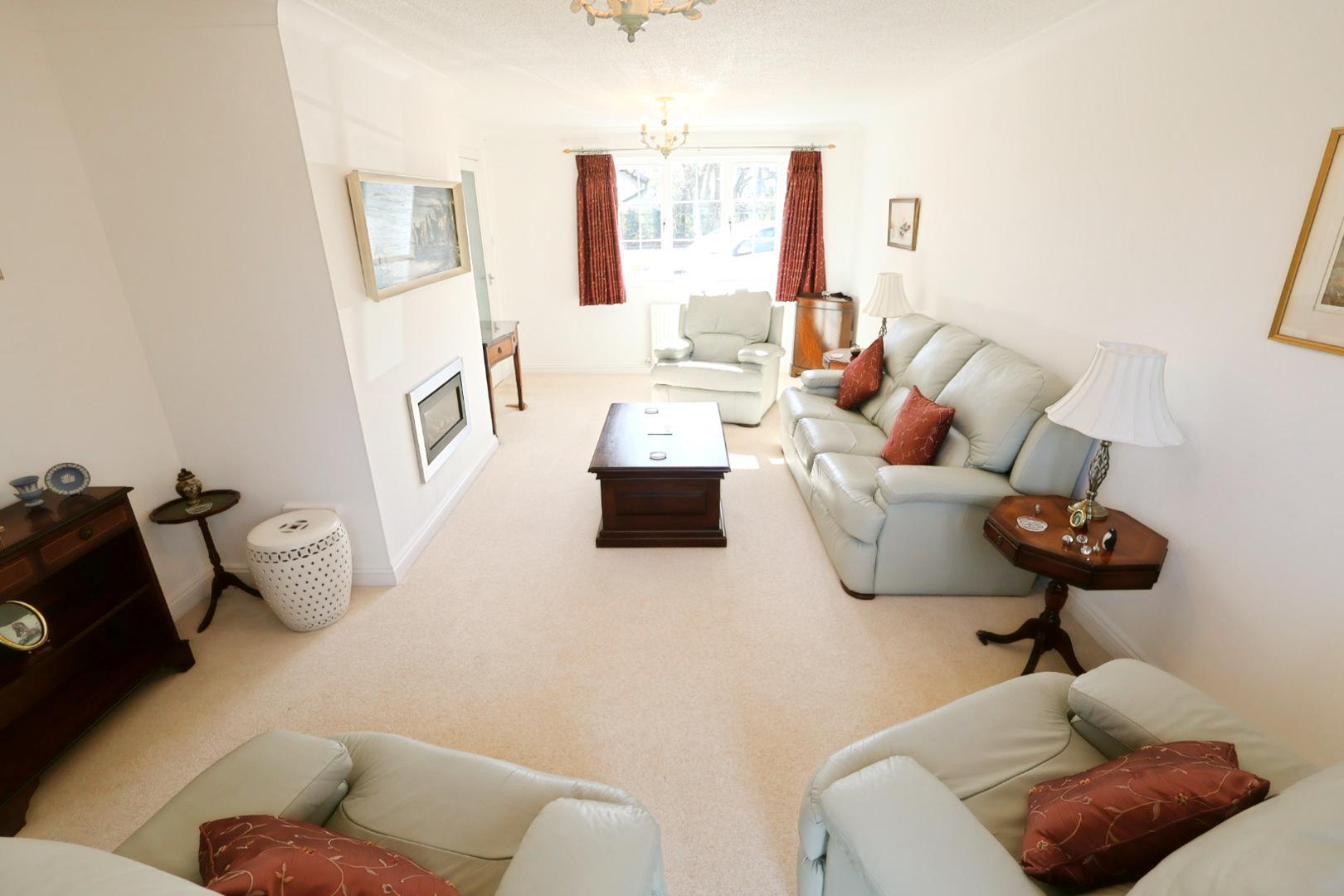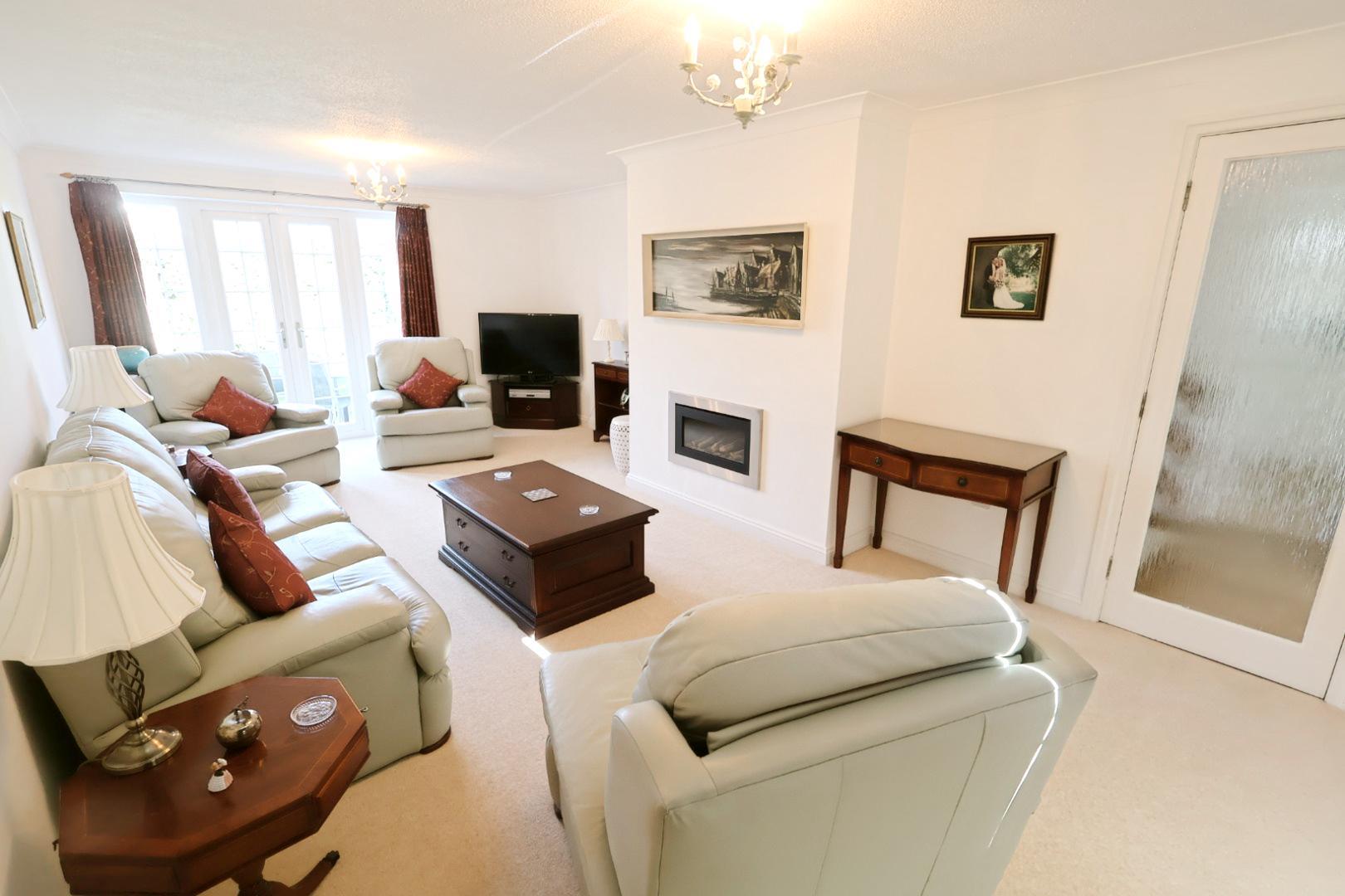 A lovely double-aspect room with a window to the front elevation and uPVC double-glazed French doors opening onto the rear patio. Features two radiators and a living flame gas log-effect inset fireplace.