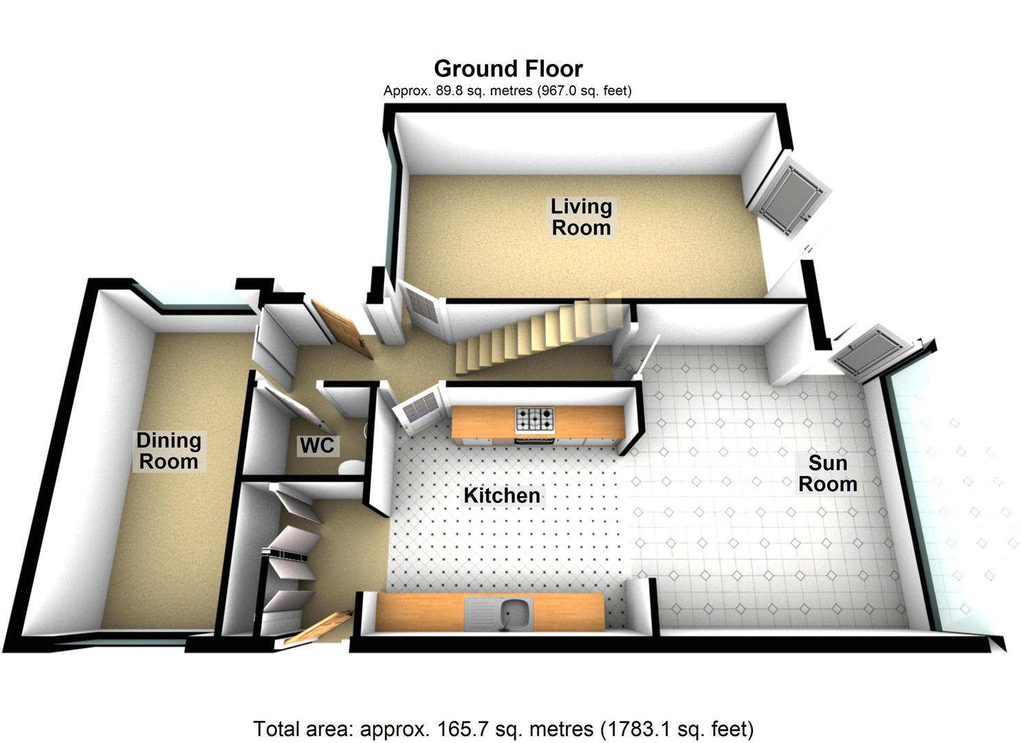 The property benefits from gas central heating and uPVC double glazing and, in brief, comprises: an inviting entrance hall with a cloakroom WC; a double-aspect living room with a living flame gas fire and French doors opening to the rear garden; and a contemporary gloss white kitchen with a range of integrated appliances, open through to a sitting room which in turn leads to an orangery.