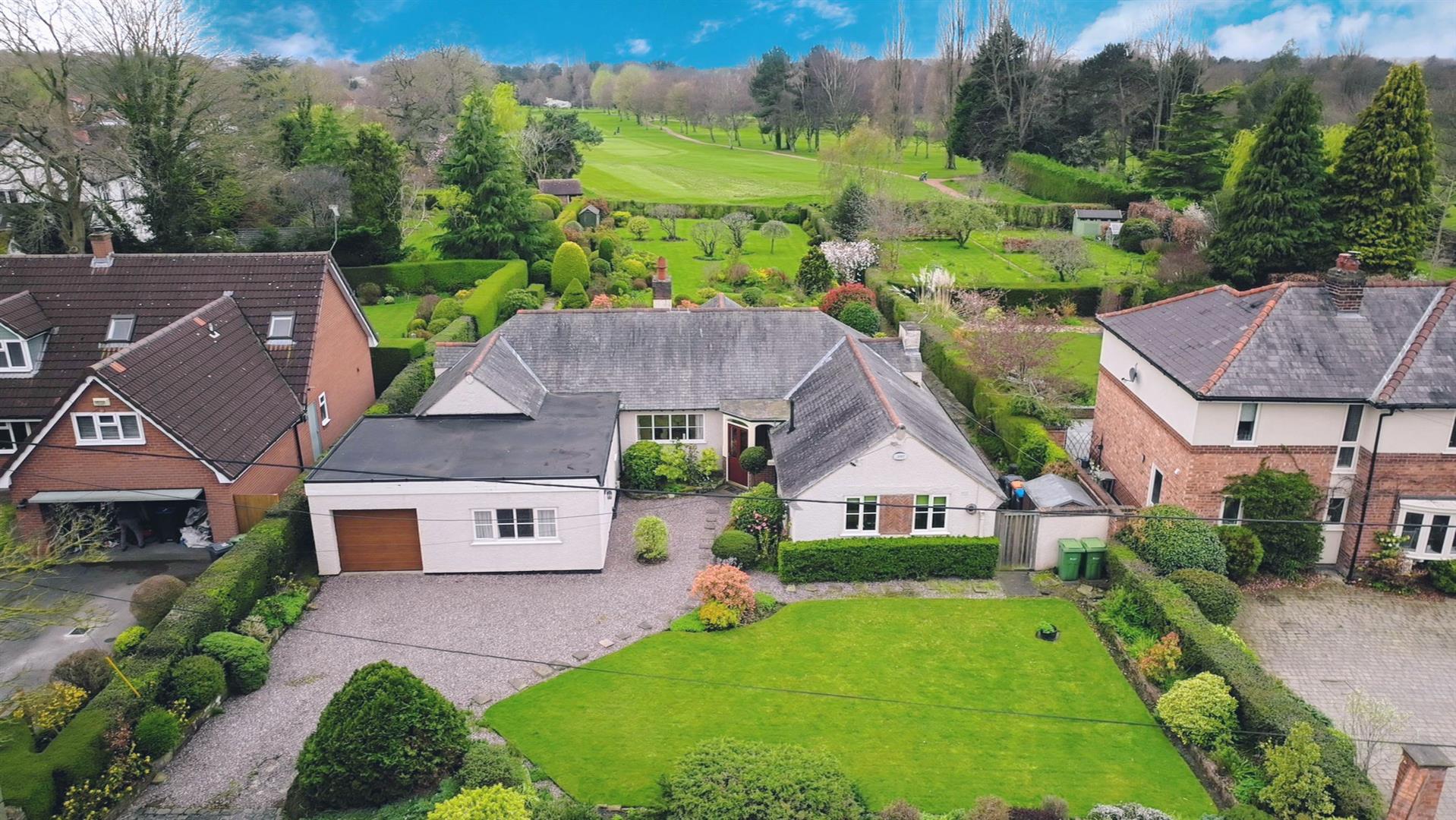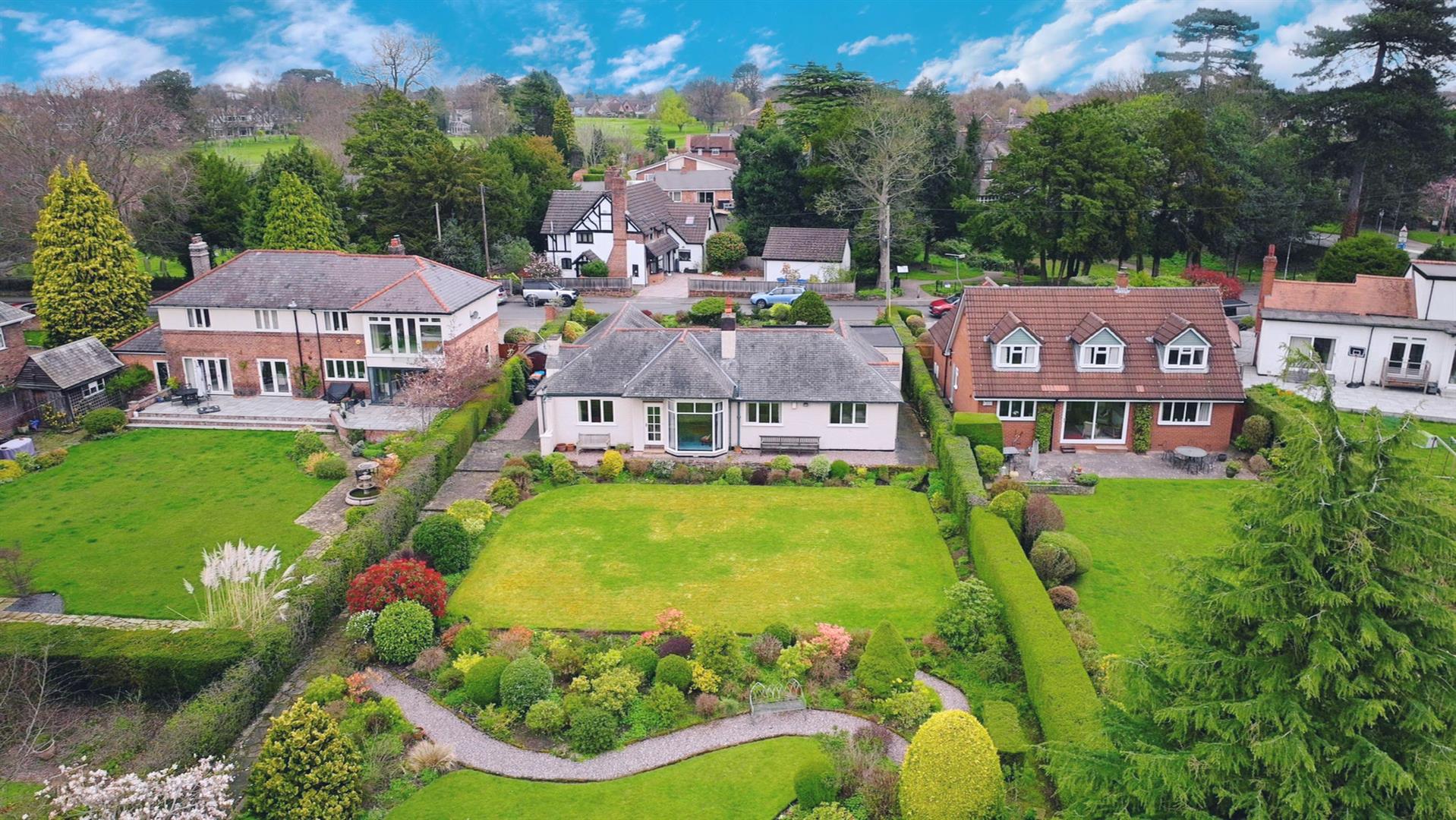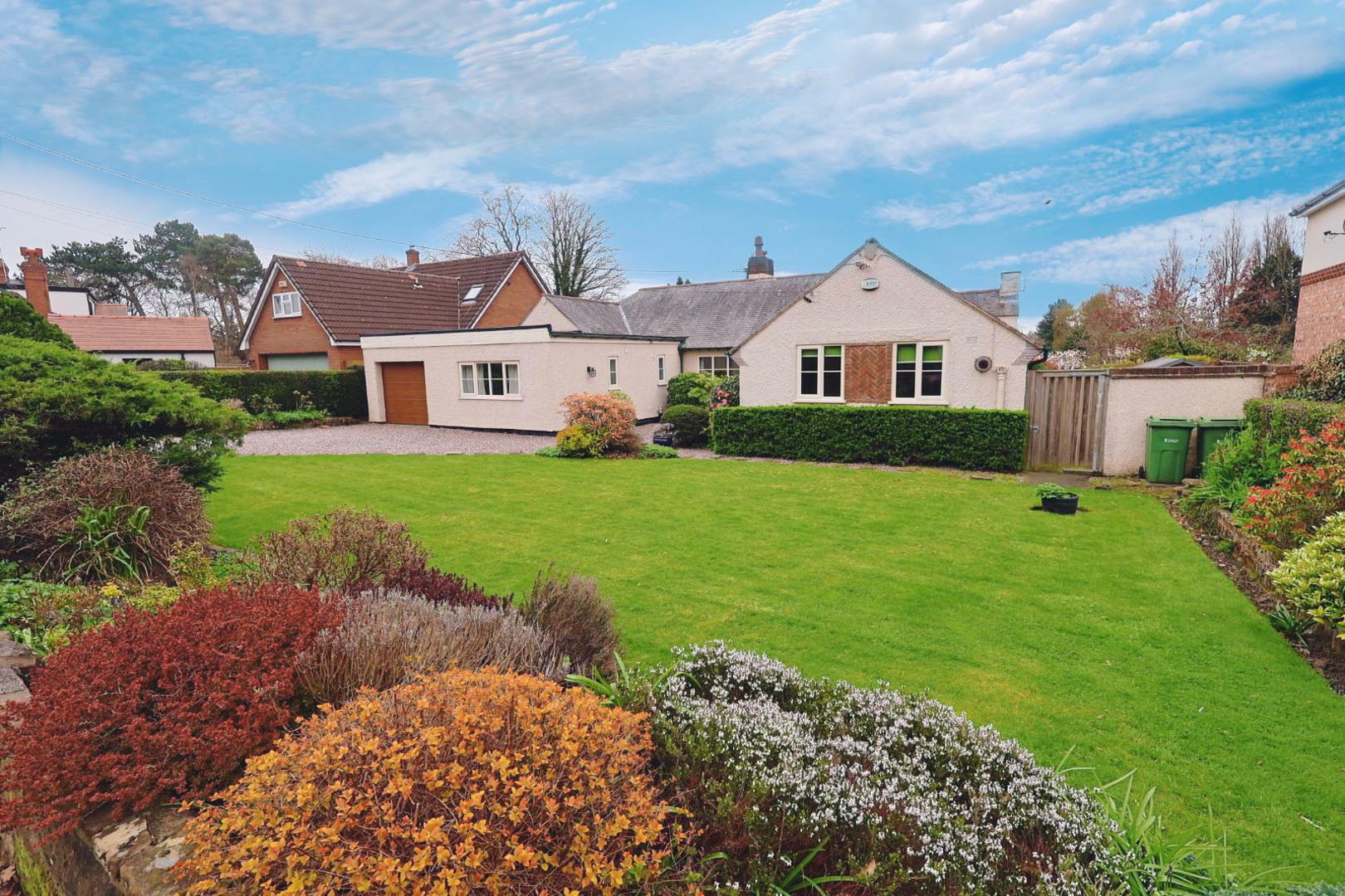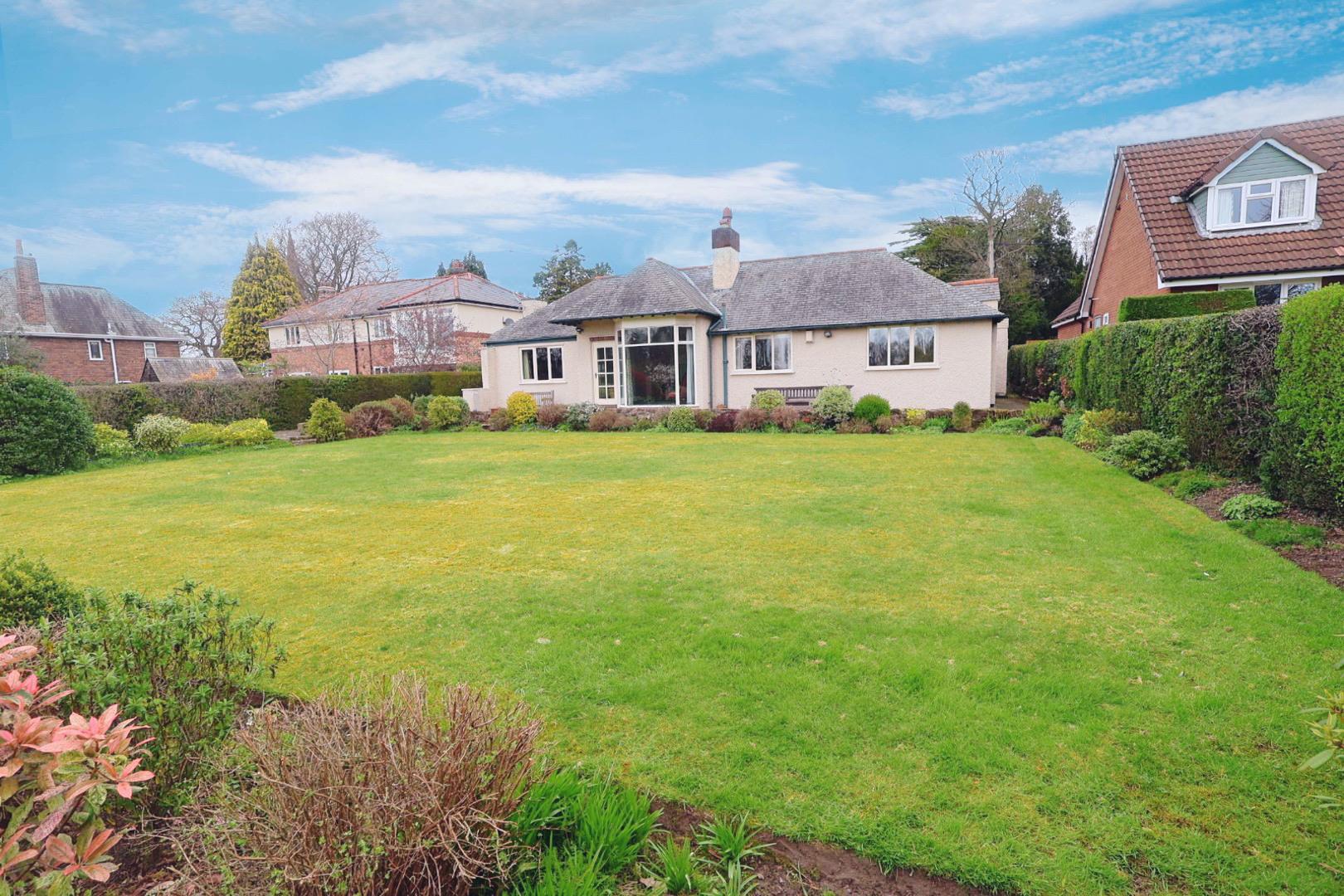 Nestled in the charming area of Church Lane, Upton, this delightful, detached bungalow was constructed circa 1923, offering a perfect blend of traditional elegance and modern comfort. The spacious and light accommodation is centred around a large entrance hall providing access to most rooms including a breakfast room opening into a well-appointed bespoke fitted kitchen with granite worktops. The living room features a sandstone fireplace, a semi-vaulted ceiling and a substantial bay window which has beautiful views over the extensive rear garden, golf course and Welsh hills beyond. An internal glazed door leads into the dining room. There is a family bathroom with a three-piece suite and four double bedrooms, one of which benefits from en-suite facilities providing convenience for both residents and guests. One of the standout features of this bungalow are the extensive landscaped gardens, which not only enhance the property's appeal but also offer stunning views overlooking Upton Golf Course. This serene outdoor space is perfect for enjoying sunny afternoons or hosting gatherings with family and friends. Additionally, the property benefits from gravelled off-road parking for several vehicles, and a single garage for security.