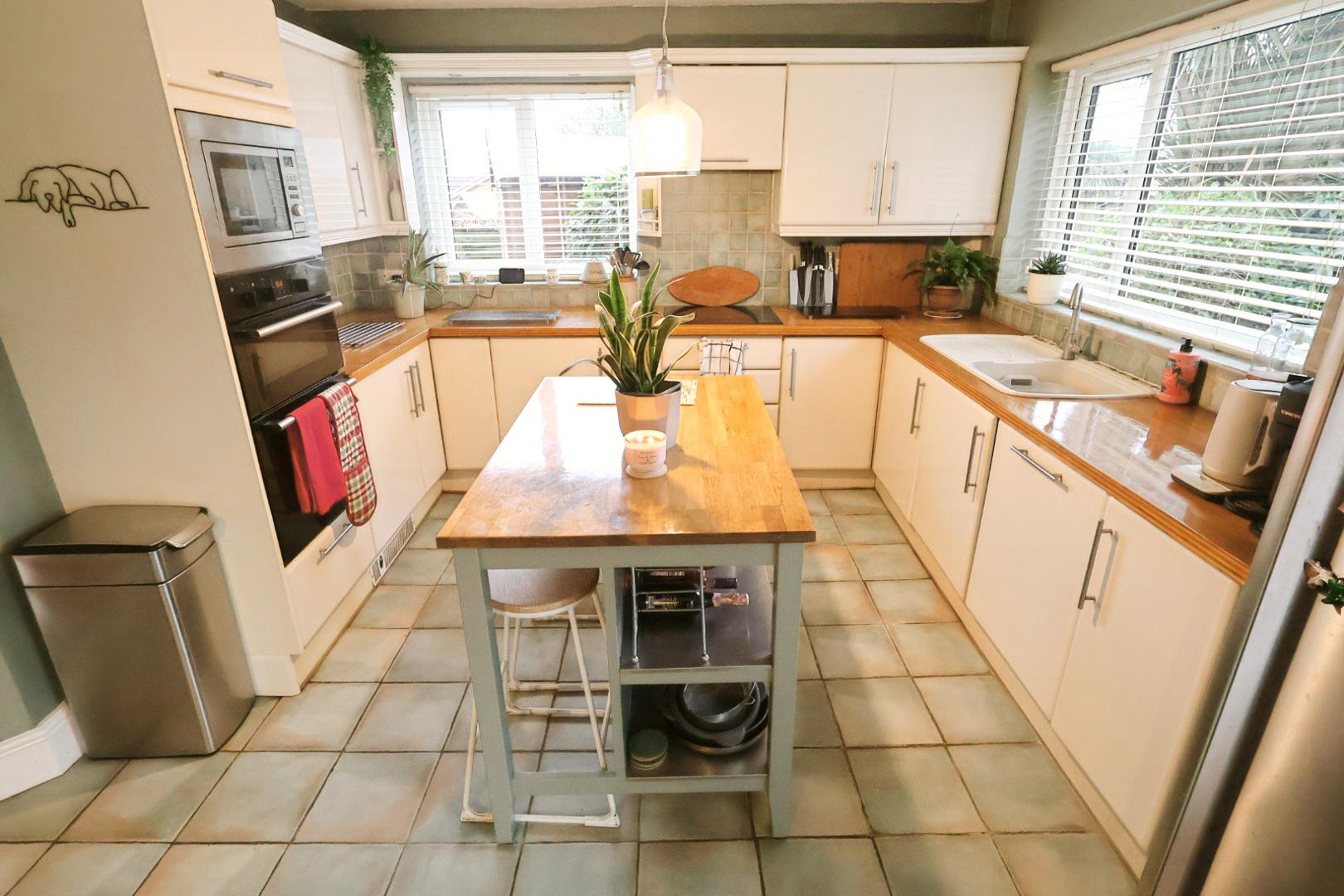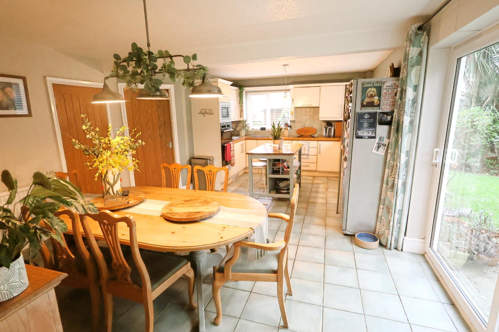 A superb social space with ceramic tiled flooring throughout, radiator, windows to the rear and side elevations, and patio doors opening to the rear garden. A partially glazed door leads to the conservatory.
