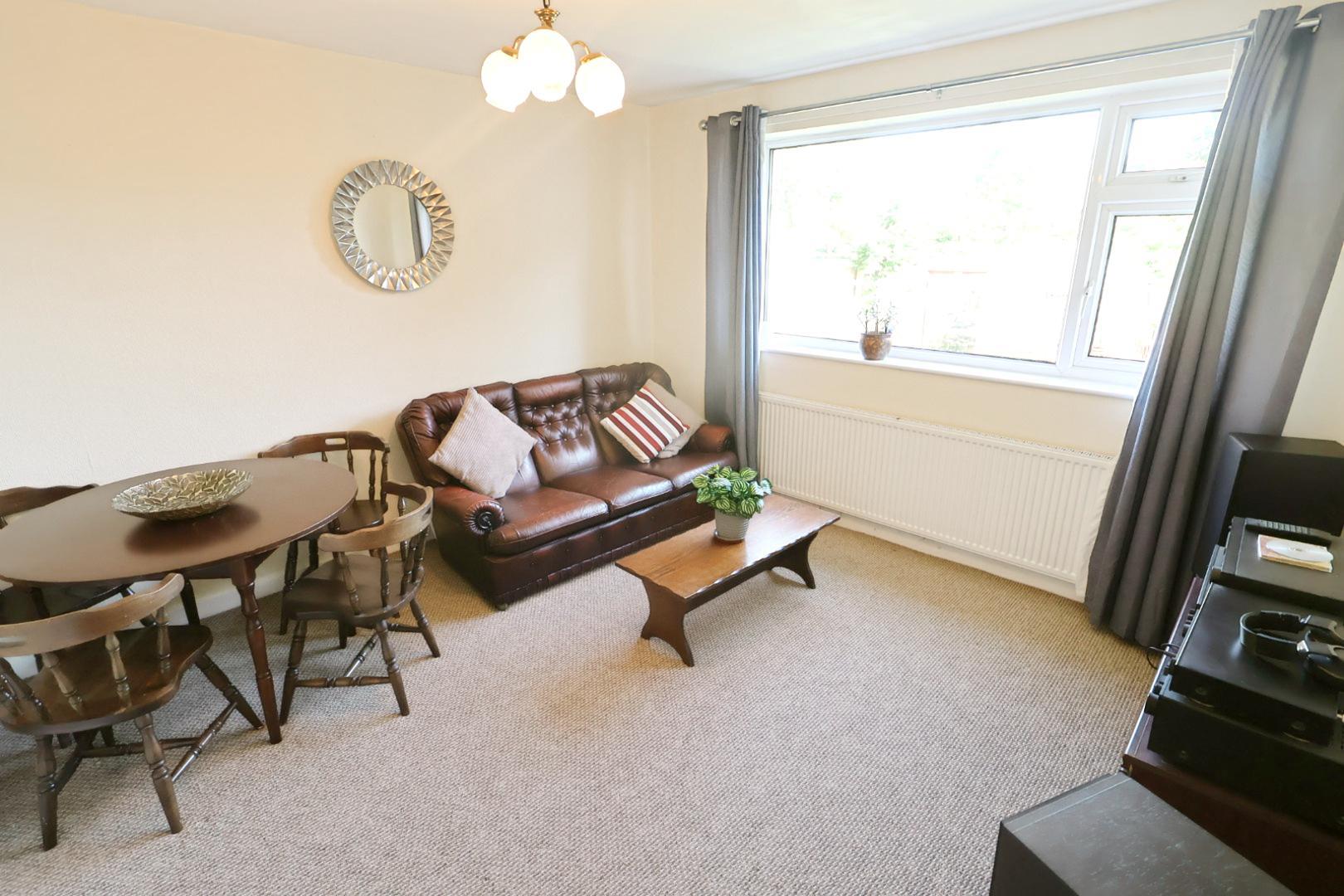 A bright reception room with a window to the front elevation and radiator below. Installed with a living flame gas fire with a feature Adam-style fire surround.