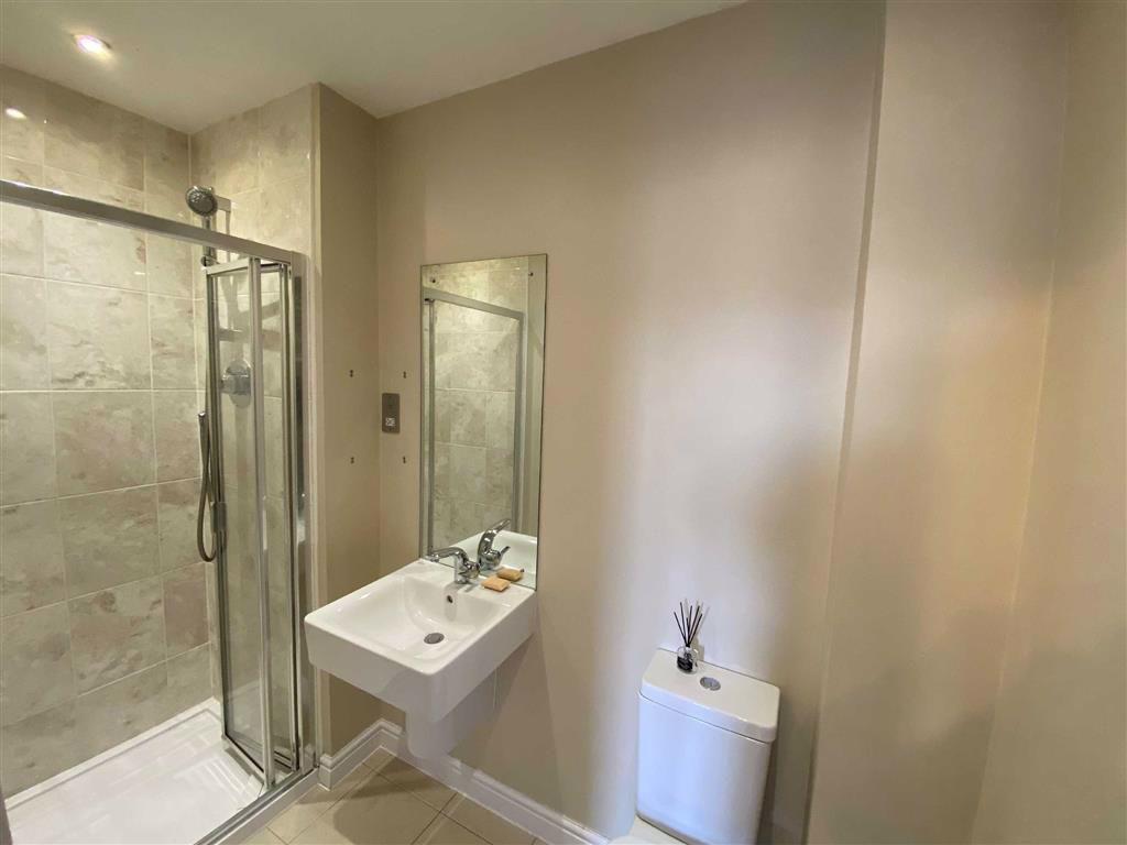Stairs from the lounge lead to the first floor, where the main bedroom benefits from an en-suite comprising an enclosed shower, wash basin, WC, and a heated towel radiator. There are two further bedrooms, both of good size, along with a contemporary family bathroom comprising a bath with shower over, wash basin and WC.
