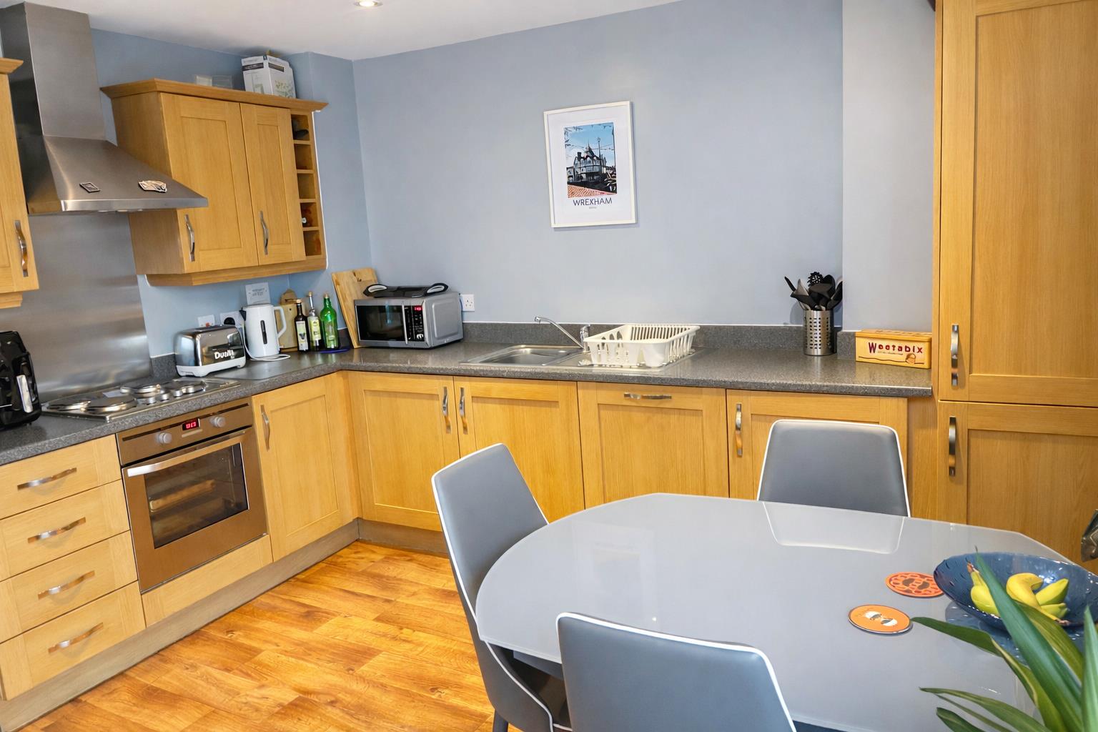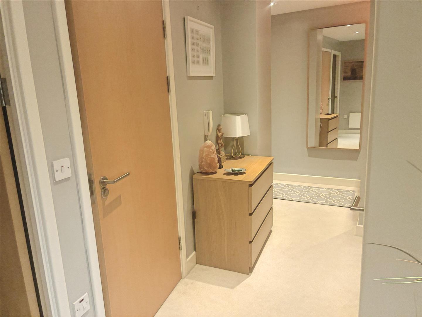 A stylish two-bedroom first-floor apartment in the popular Eagles Meadow development, offering open-plan living, en-suite, private balcony, and secure underground parking in Wrexham town centre.