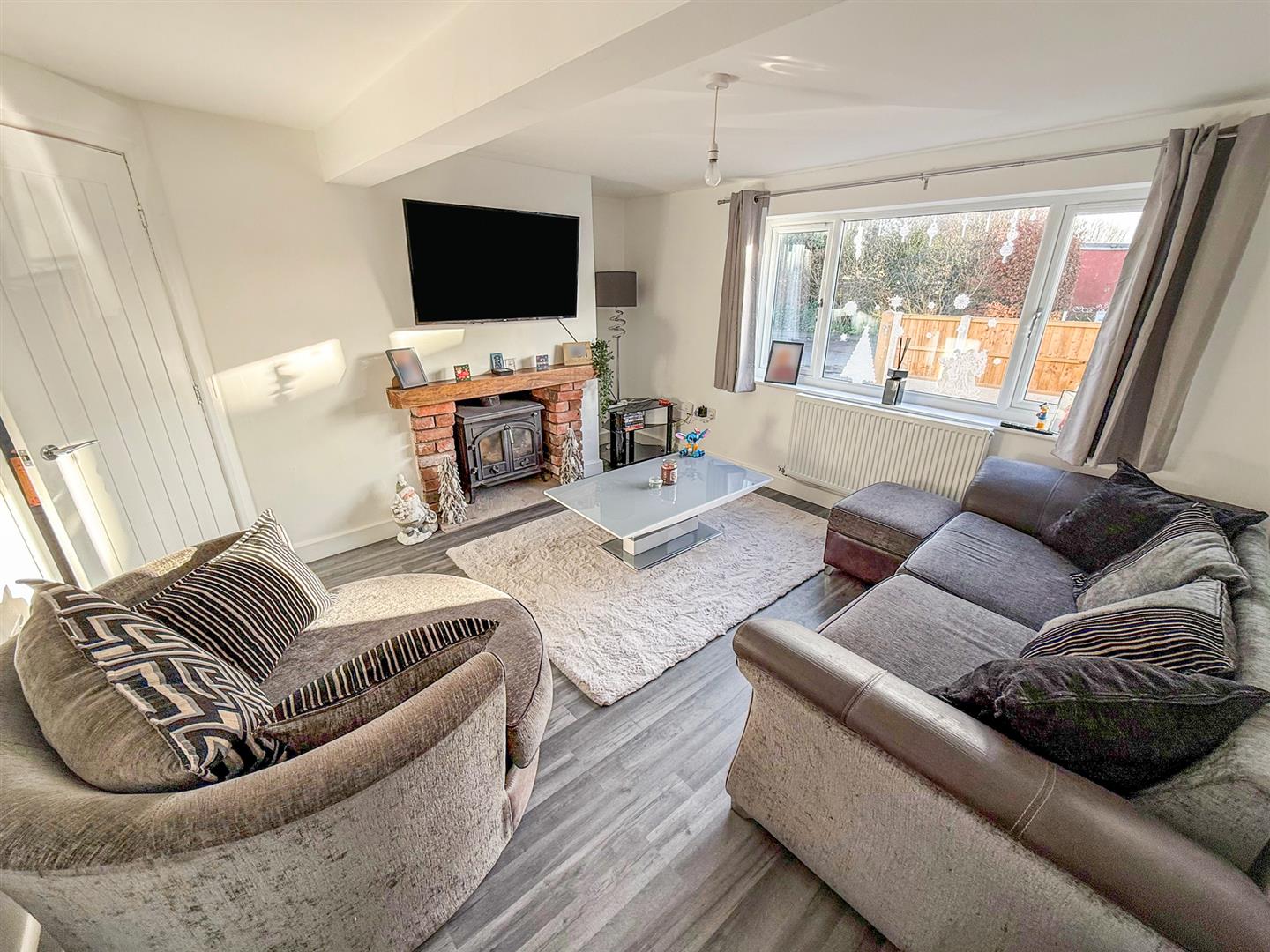 The good sized bright lounge has a feature brick fireplace with inset multi fuel burning stove, window to the front and a radiator. There is an understairs cupboard providing storage. A door leads through to the kitchen.
