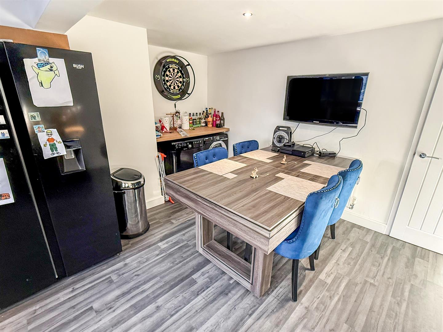 A great space for entertaining having a recently fitted kitchen comprising a range of modern navy blue coloured base and wall mounted units with contrasting worktop over, stainless steel sink and drainer with mixer tap over, integrated oven with Lamona four ring halogen hob and extractor hood over. Wall mounted Worcester gas fired central heating boiler, and space and plumbing for appliances. Window to the front aspect and vinyl flooring. A door leads through to the rear reception room/ bedroom three.