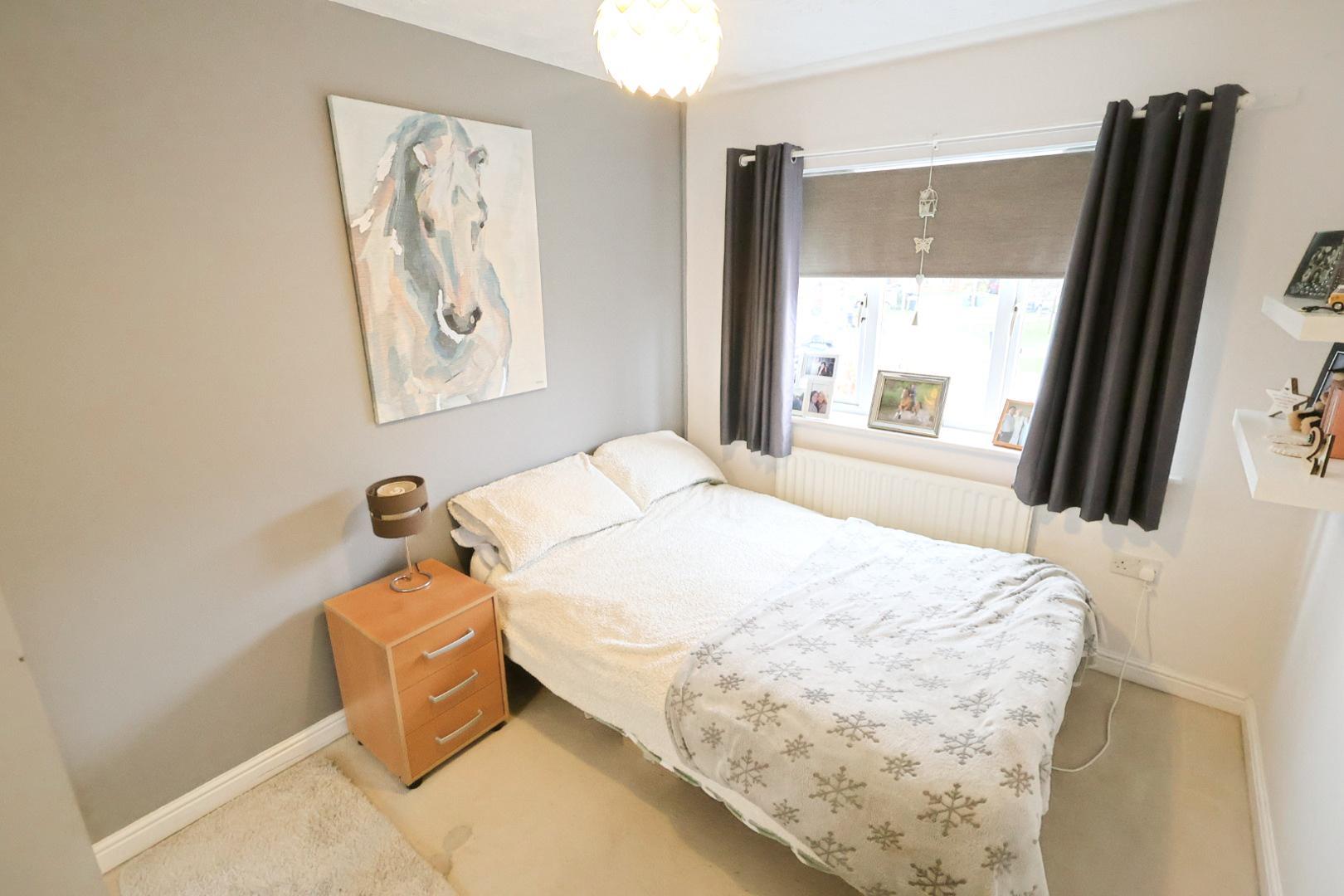 Bedroom two is a generous double room with fitted mirrored wardrobes and a window facing the front elevation with a radiator below.