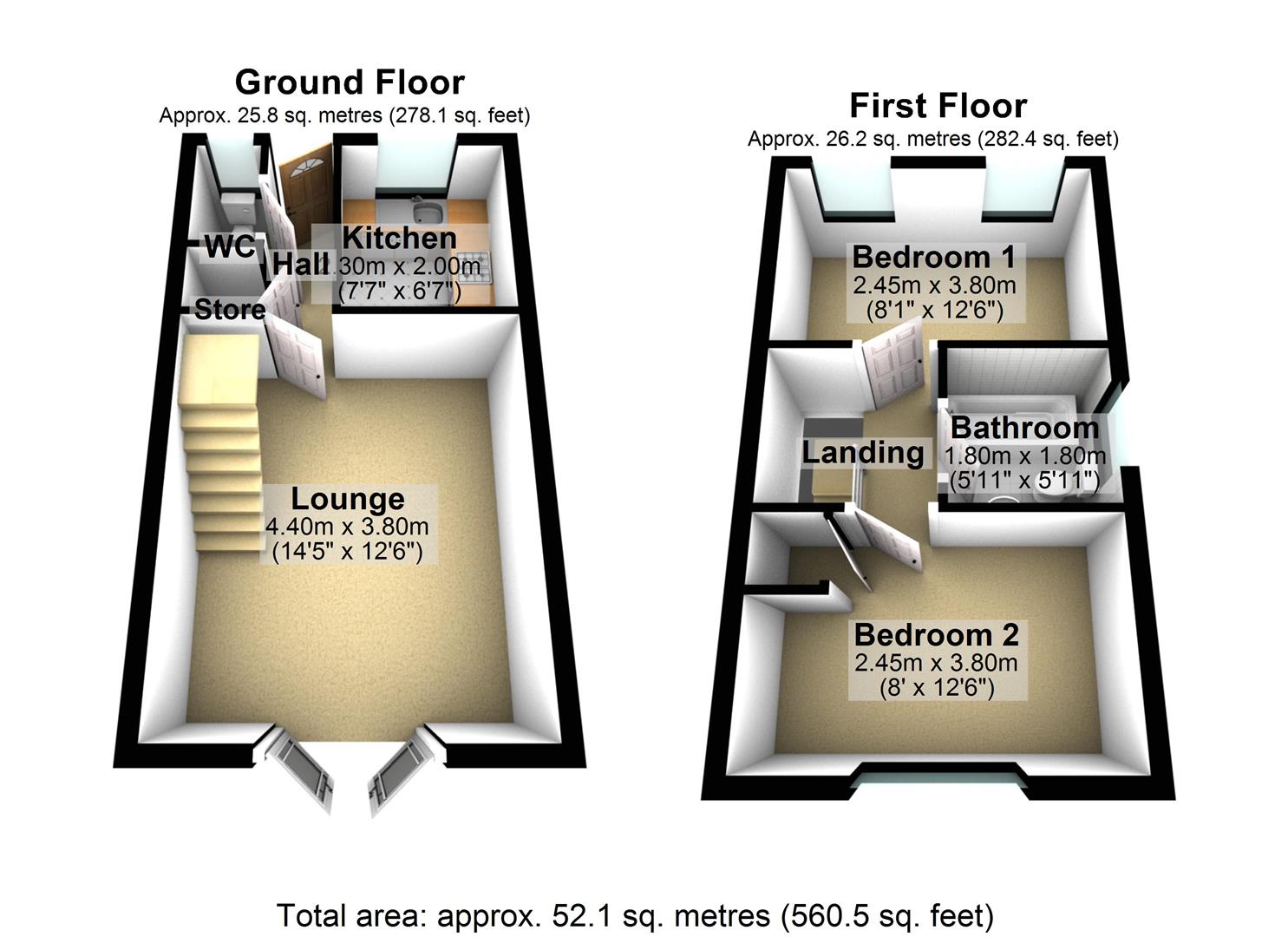 A modern two-bedroom semi-detached home in a quiet Wrexham cul-de-sac. Featuring off-road parking, a spacious lounge with French doors, fitted kitchen, cloakroom WC, and an enclosed rear garden. Ideally situated close to the city centre and transport links.
