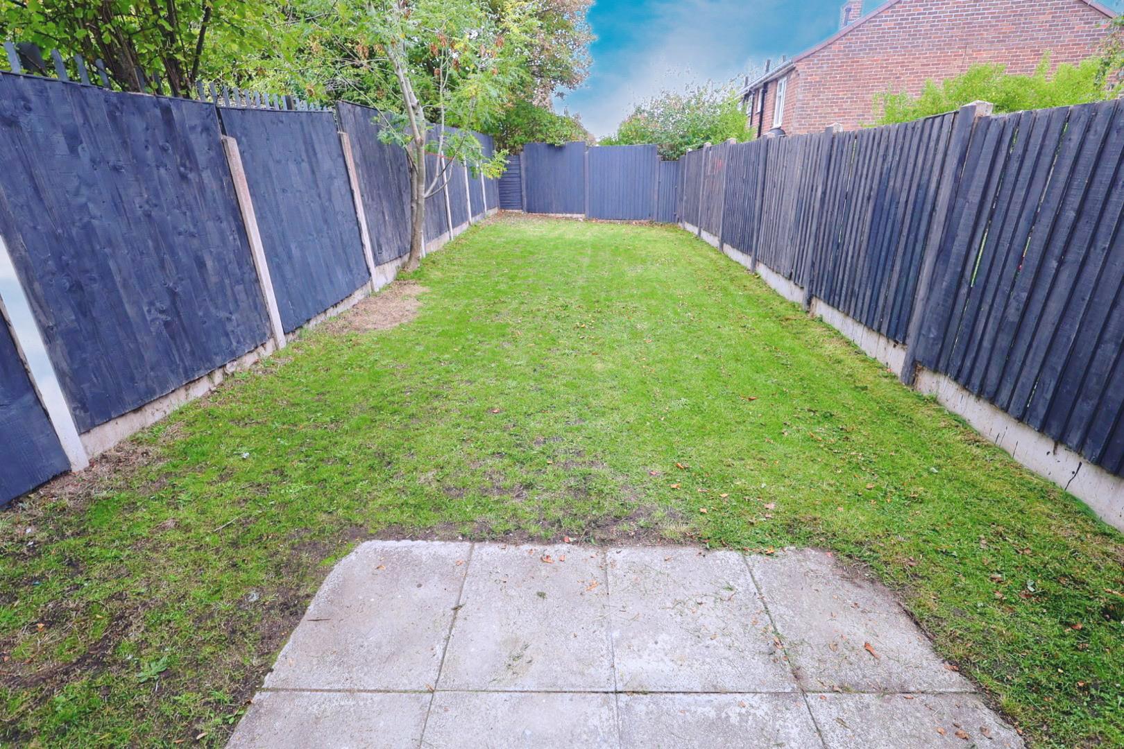 To the front of the property are two tandem off-road parking spaces and a paved pathway leading to the front door. Alongside the path is a timber gate opening to a shelved storage area. To the left-hand side is a predominantly lawned garden with a timber-gated side access leading to the rear garden. A paved pathway runs alongside the property, leading to the rear garden, which features a paved patio area and a lawned garden, all enclosed by timber fence panels.
