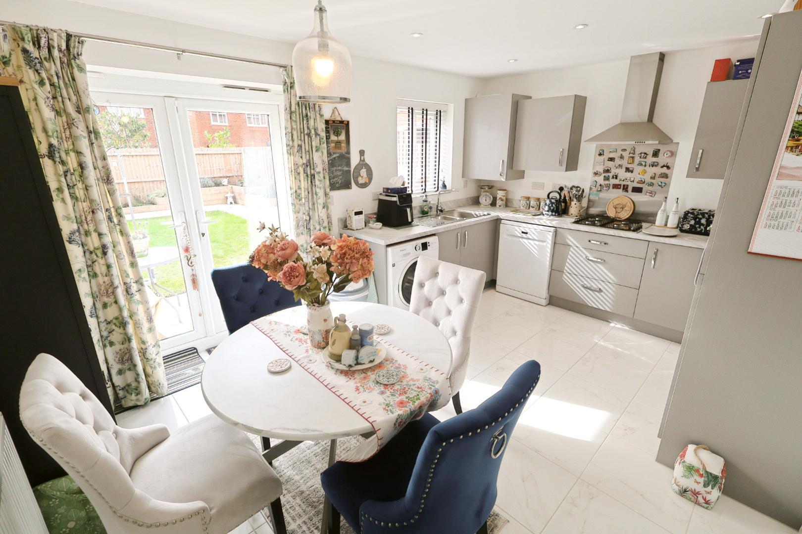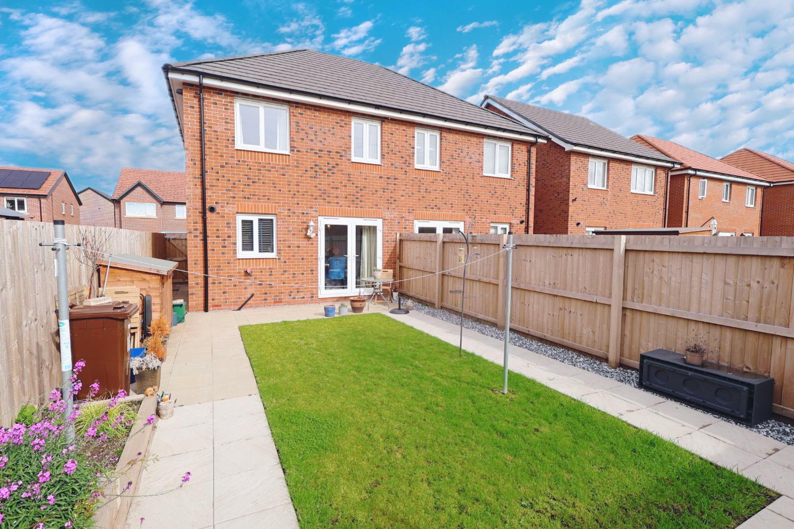 Forming part of a popular development, this beautifully presented three-bedroom property benefits from UPVC double glazing and gas central heating. With its modern features and thoughtful design, this semi-detached house is a fantastic opportunity for anyone looking to settle in a vibrant and welcoming neighbourhood. The accommodation comprises of an entrance hall with cloakroom WC, a spacious living room, and a modern kitchen/diner with French doors opening to the beautifully landscaped rear garden. The first-floor landing provides access to the family bathroom and three bedrooms, with the principal bedroom enjoying en-suite facilities. Externally, the front of the property offers twin off-road parking spaces and timber side access to a southerly-facing rear garden, which is mainly laid to lawn with paved walkways, sleeper-raised planters, and enclosed by timber fencing.