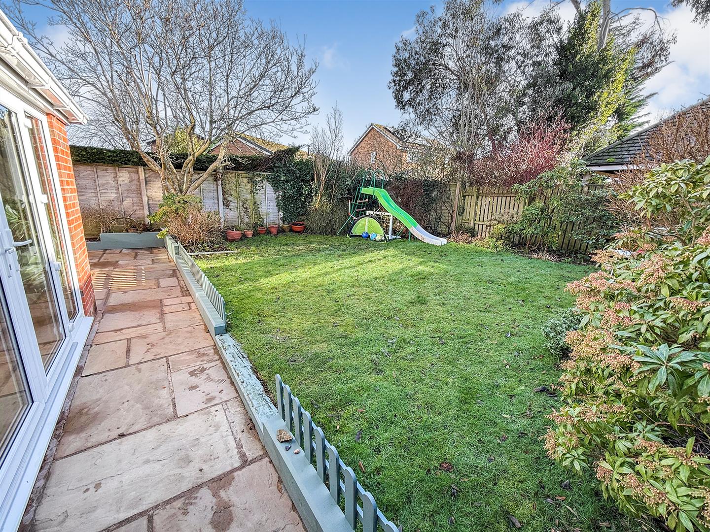 To the rear of the property is a private, South facing good sized garden with a patio area, a lawned and shrubbed area, fence panelling and side access.