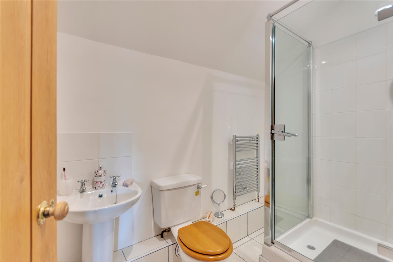 The modern shower room is fitted with a shower cubicle with a Triton electric shower over, heated towel rail, low level W/C, wash hand basin, radiator, tiled flooring, spotlights and an extractor fan.