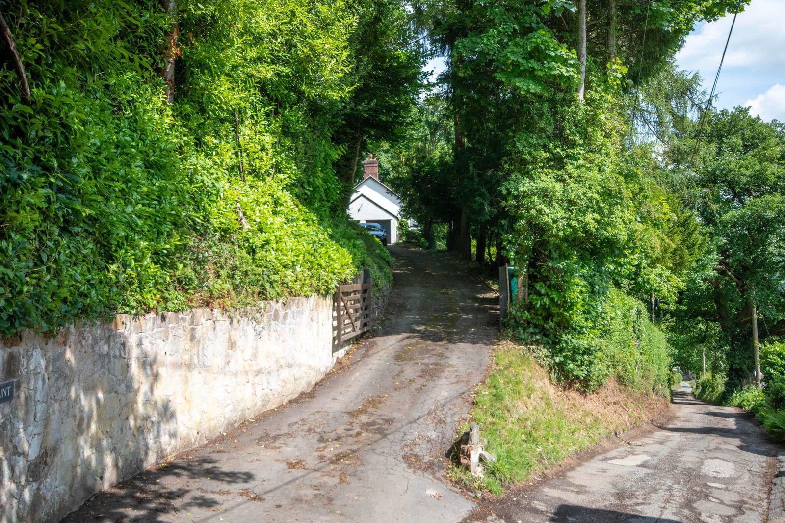 The property is approached from the lane up a long private driveway leading up to the house. There is parking and turning for several vehicles.