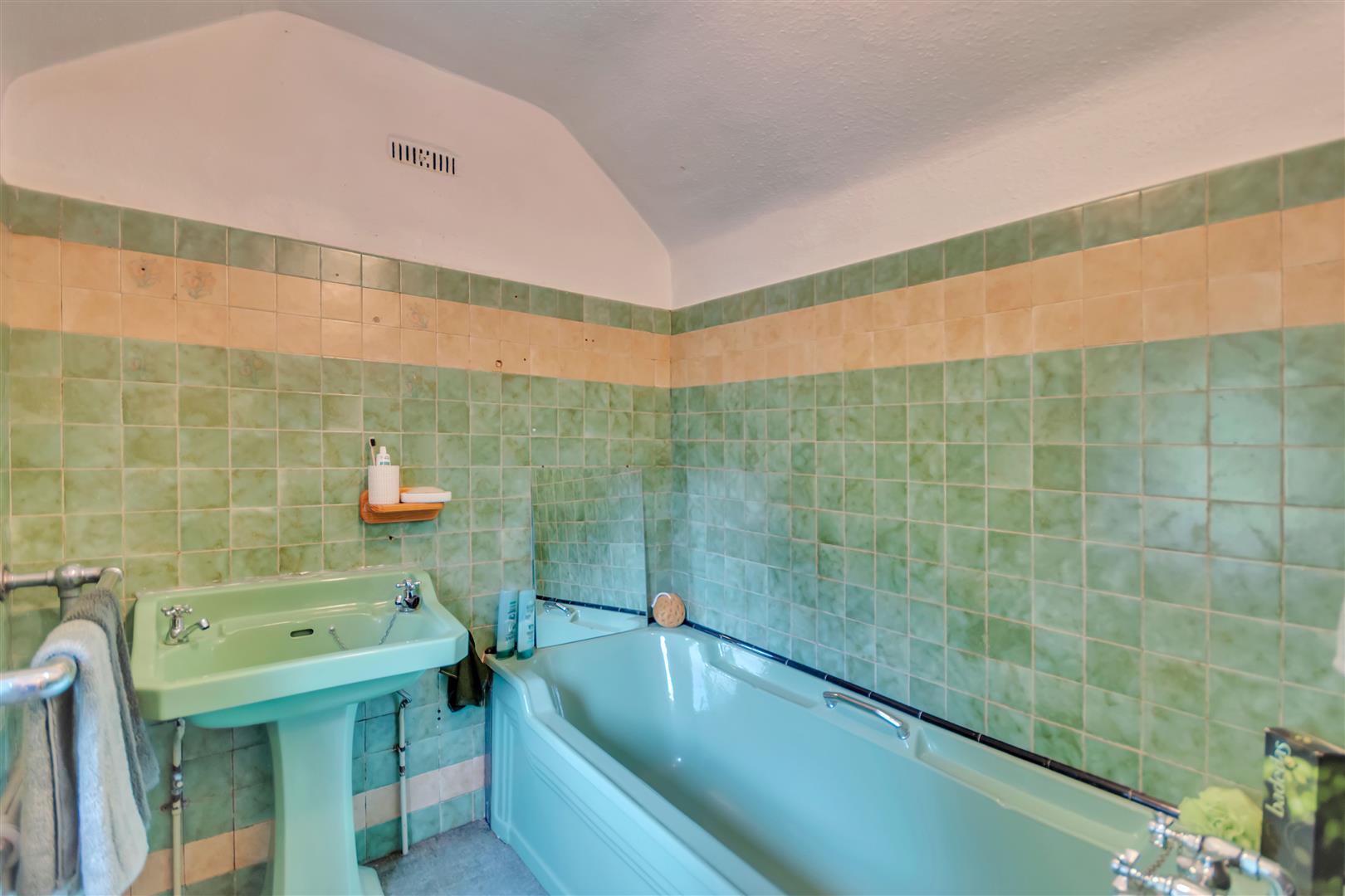 The family bathroom has two windows to the side, low level W/C, radiator, panel bath with mixer taps over, wash hand basin, part tiled walls, heated towel rail and two radiators.