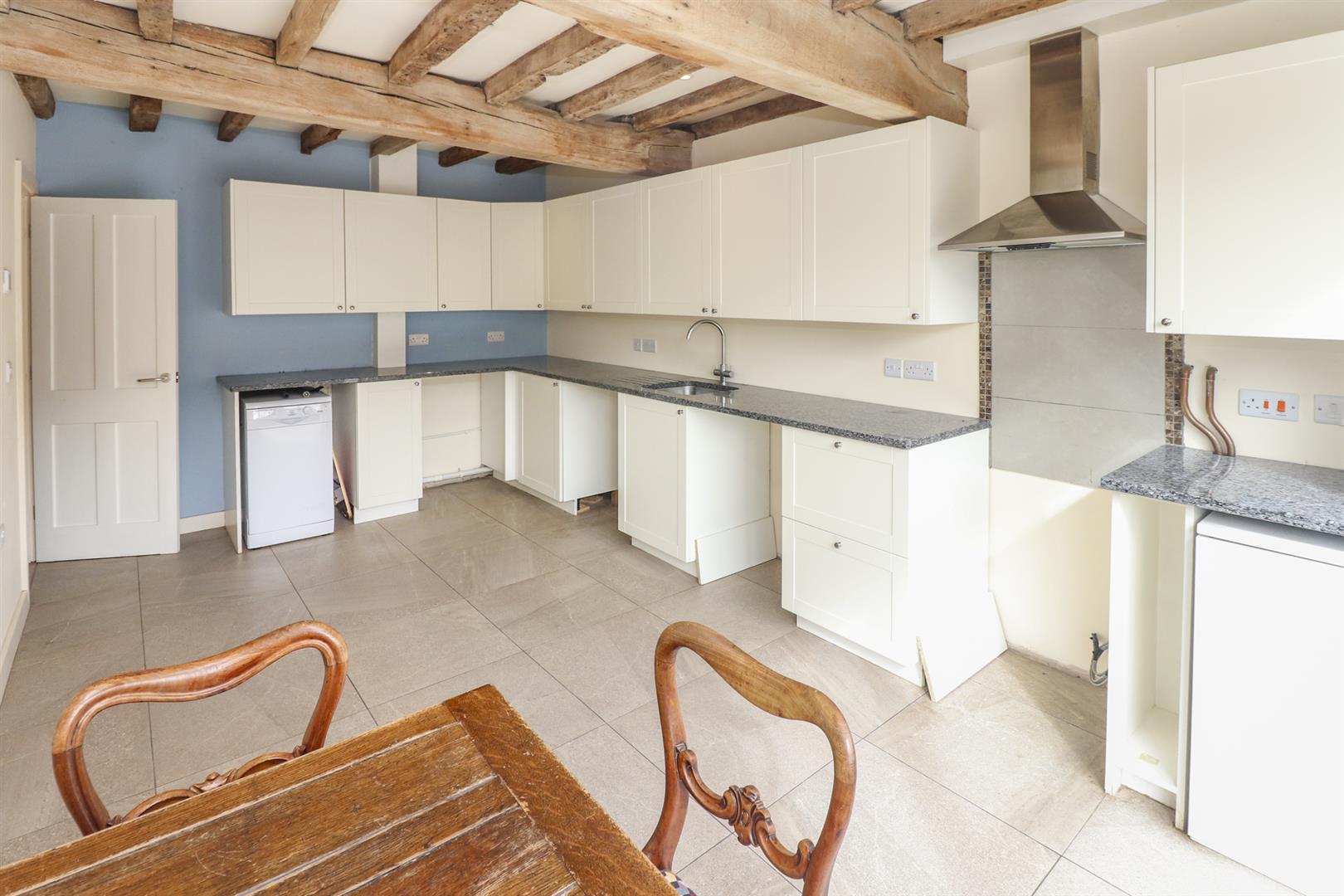 The well appointed kitchen/ dining room has a good range of base and wall units with granite work surfaces over, stainless steel inset sink and mixer tap, spotlighting, space and plumbing for appliances, chimney style extractor fan above the cooker space, tiled floor with under floor heating, beamed ceiling and floor to ceiling glazing to the front.