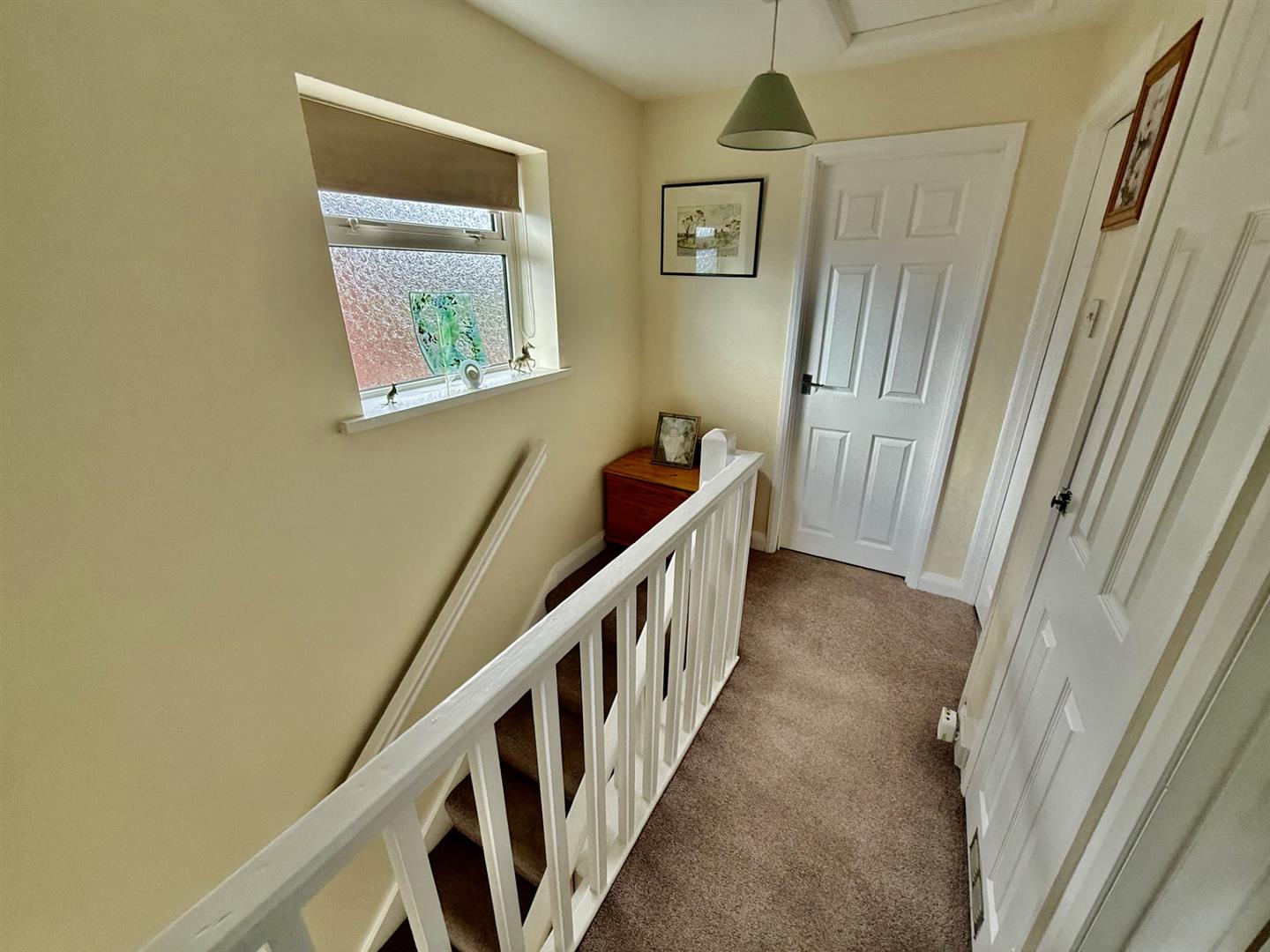 The first floor landing has a window to the side, access to the roof space by hatch and an airing cupboard housing a Worcester gas boiler and extra shelving for storage. Doors lead to the bedrooms and the bathroom.