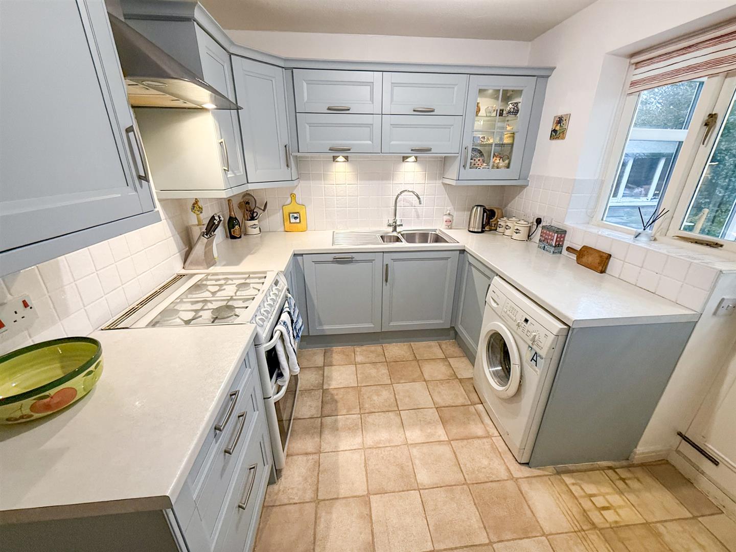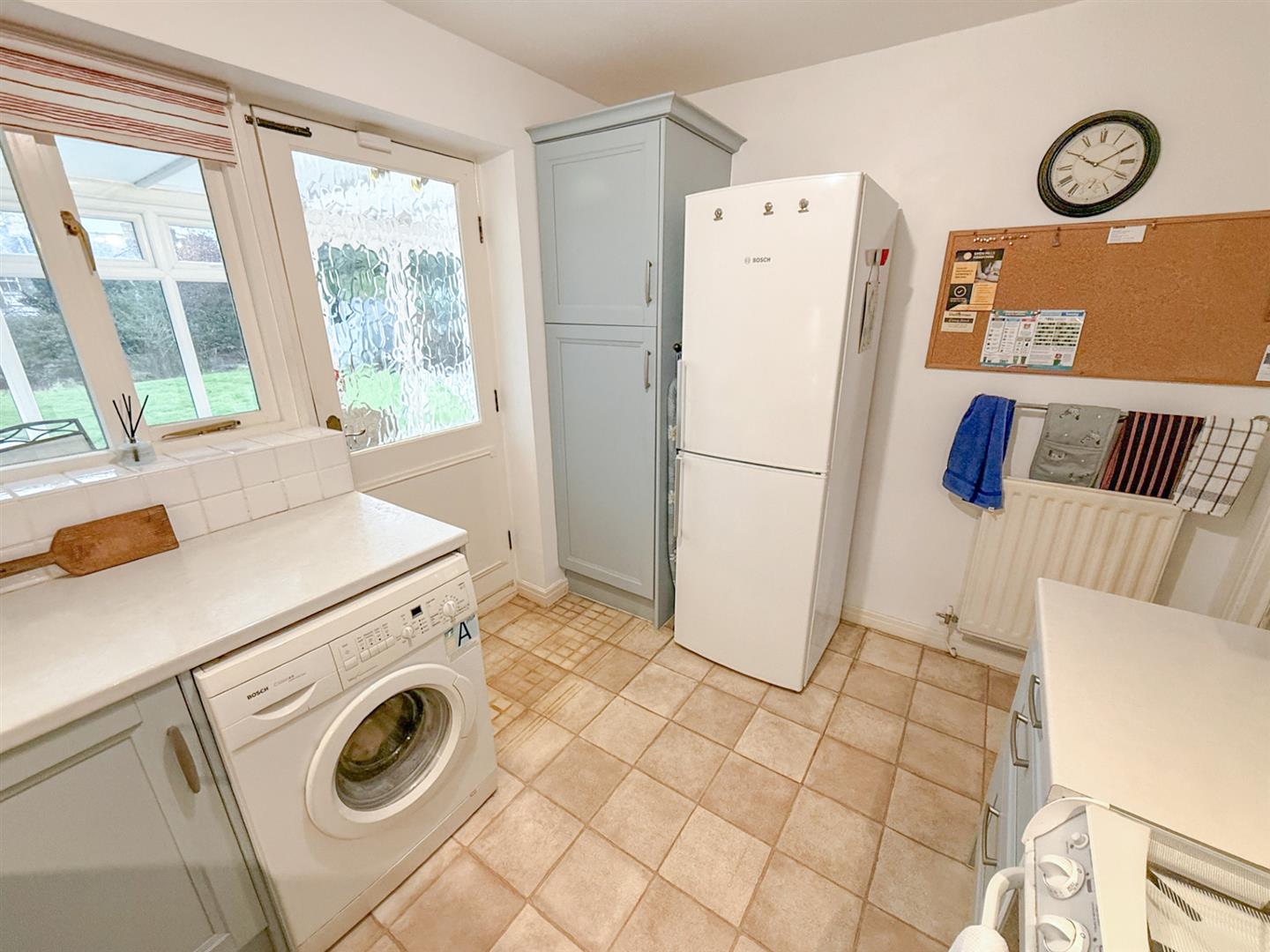 The kitchen has been fully refitted with a modern range of wall and base units, a one and half sink bowl with a mixer tap, plumbing for a washing machine and a built in extractor fan. There is a window to the rear, vinyl floor, part tiled walls, a radiator, integrated dishwasher and space for a fridge. There is a part glazed door to the rear leading to the conservatory.