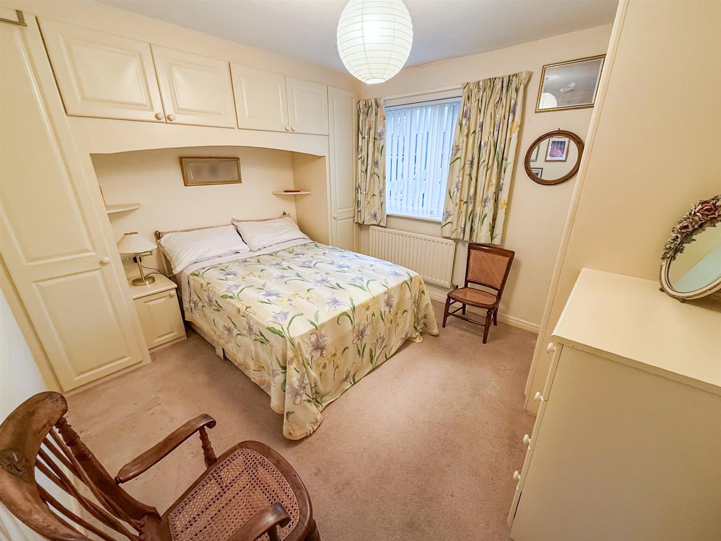 Bedroom one is a good sized double room and has a window to the front, a radiator and fitted wardrobes and drawers with additional over bed storage.