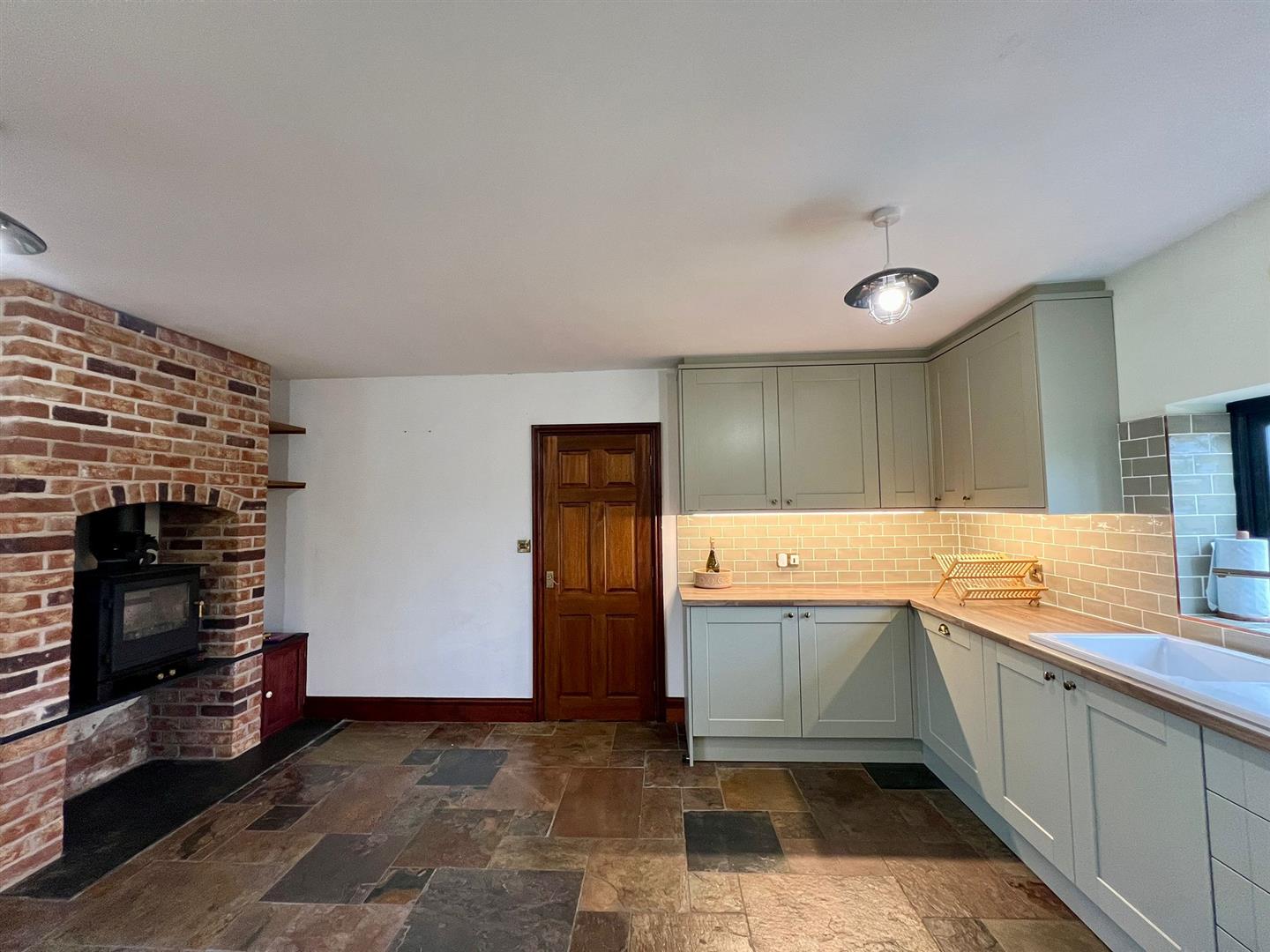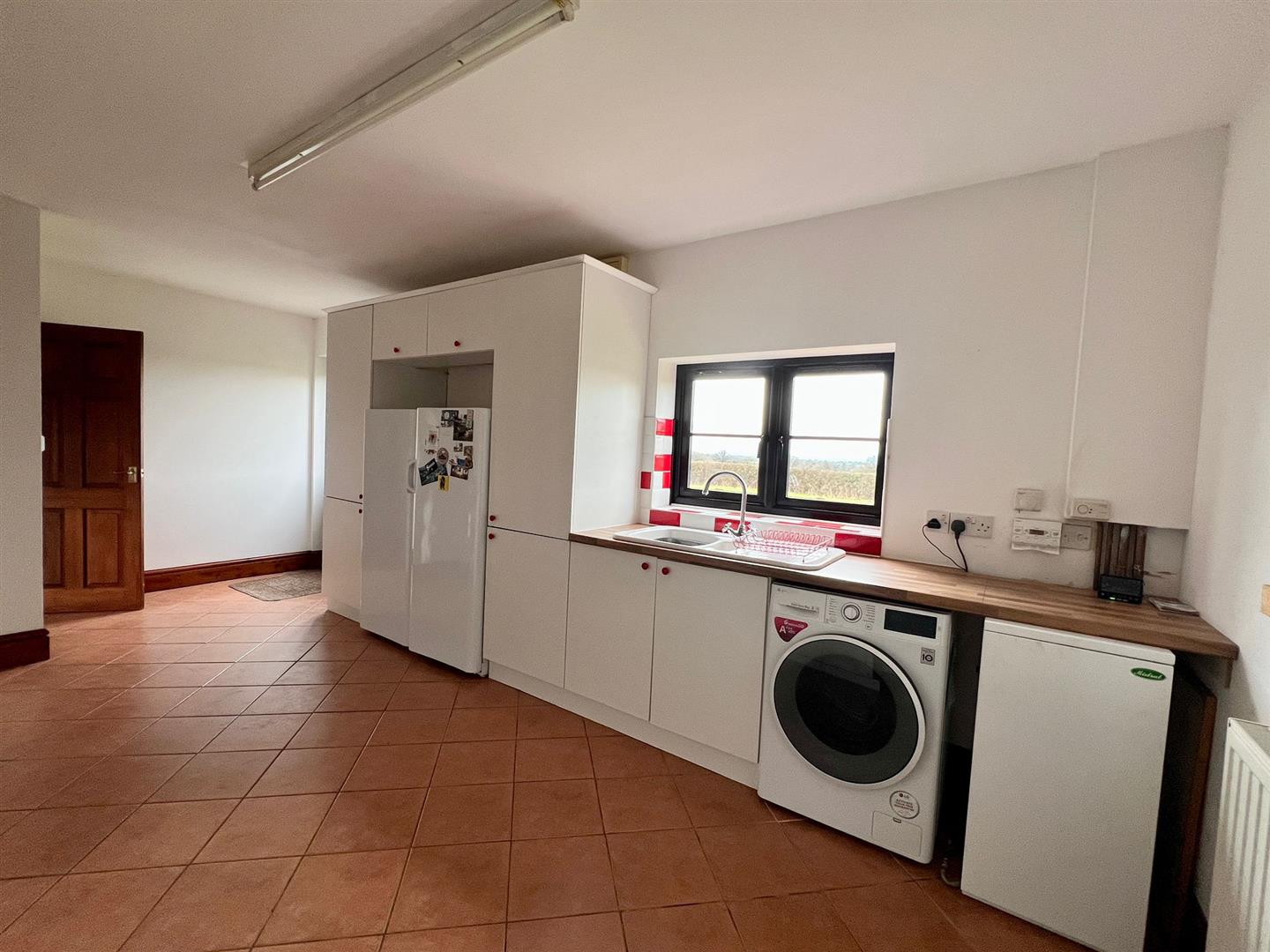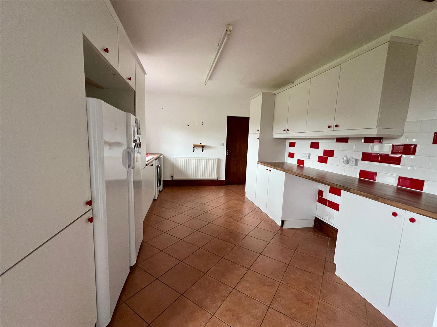 With a continuation of the tiled floor, inspection hatch to the roof space, a stainless-steel single drainer sinks unit (H&C) with tiled sill and double-glazed window over, planned space for appliances, a 'Worcester' oil fired boiler which heats the domestic hot water and central heating radiators with thermostat and time clock above, partly glazed door to rear gardens, radiator and door through to..