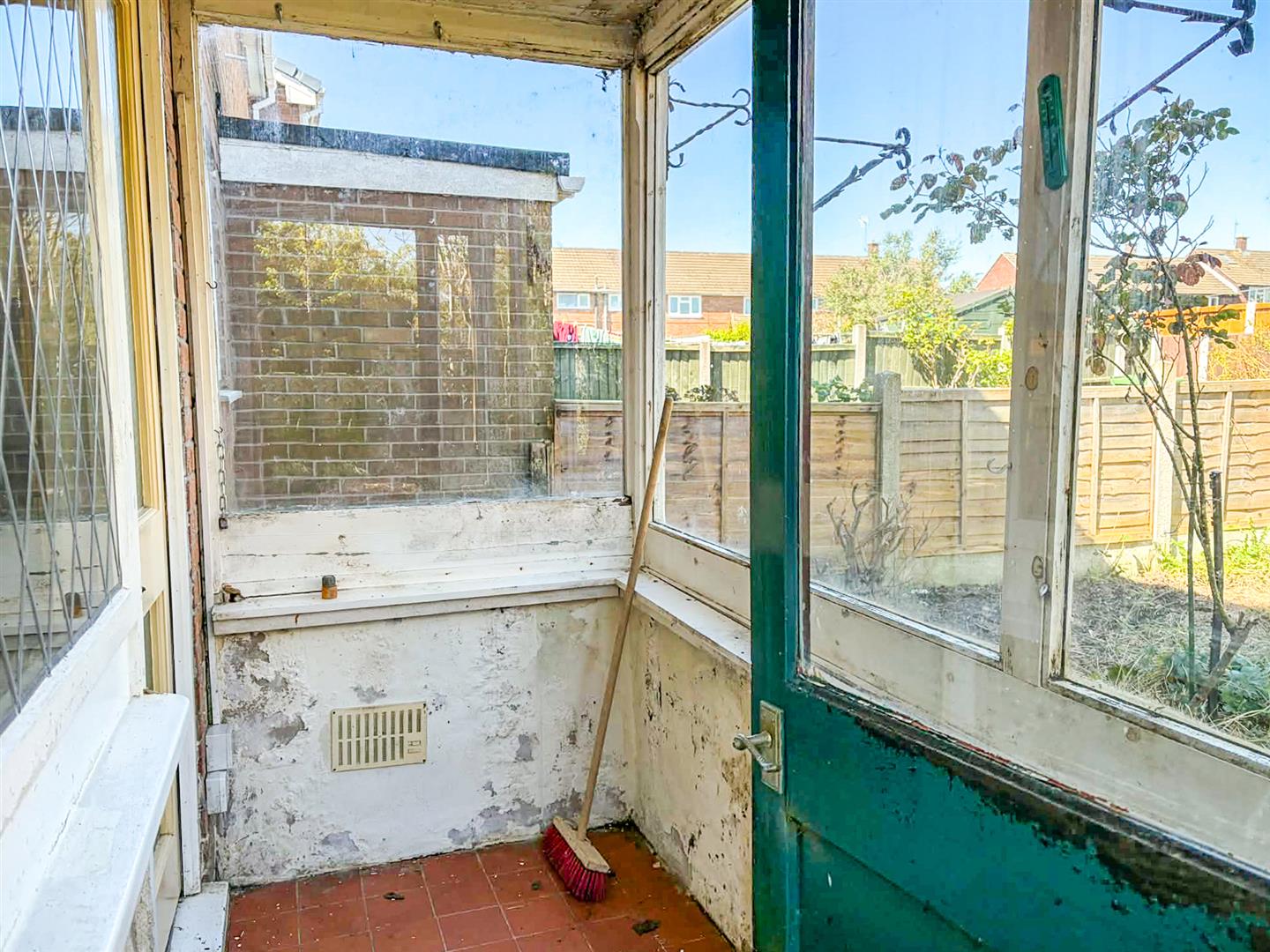 With a part glazed door to the front, windows to both sides, tiled floor and a door into the hallway.