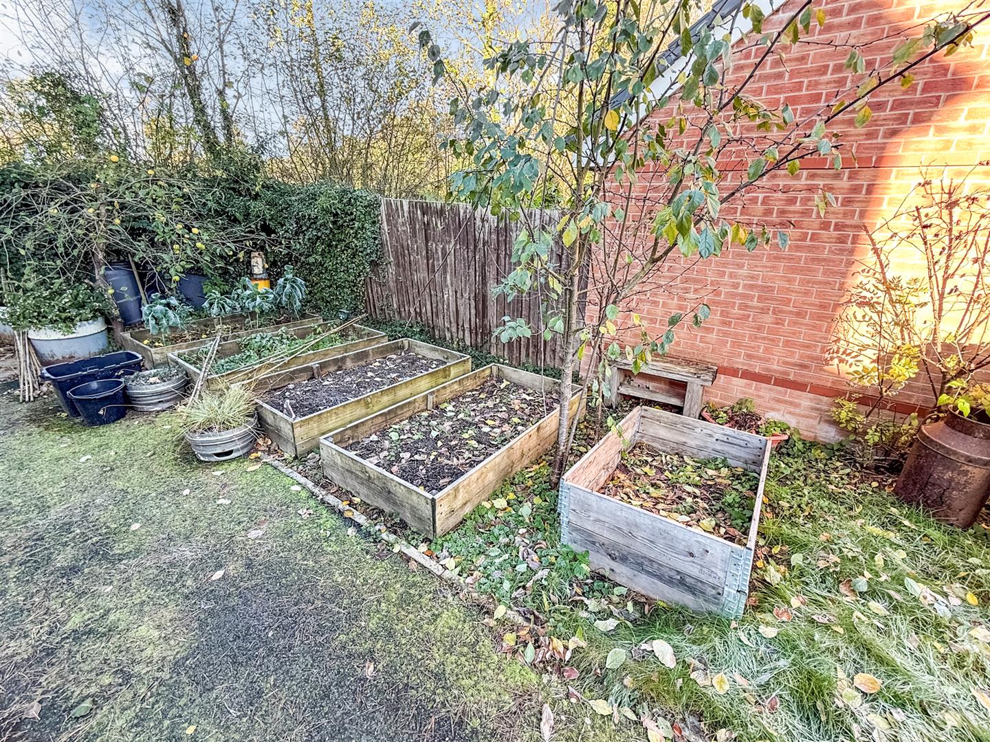 At the front of the property is a double length driveway, a vegetable garden and a gate that leads to the rear of the garden.