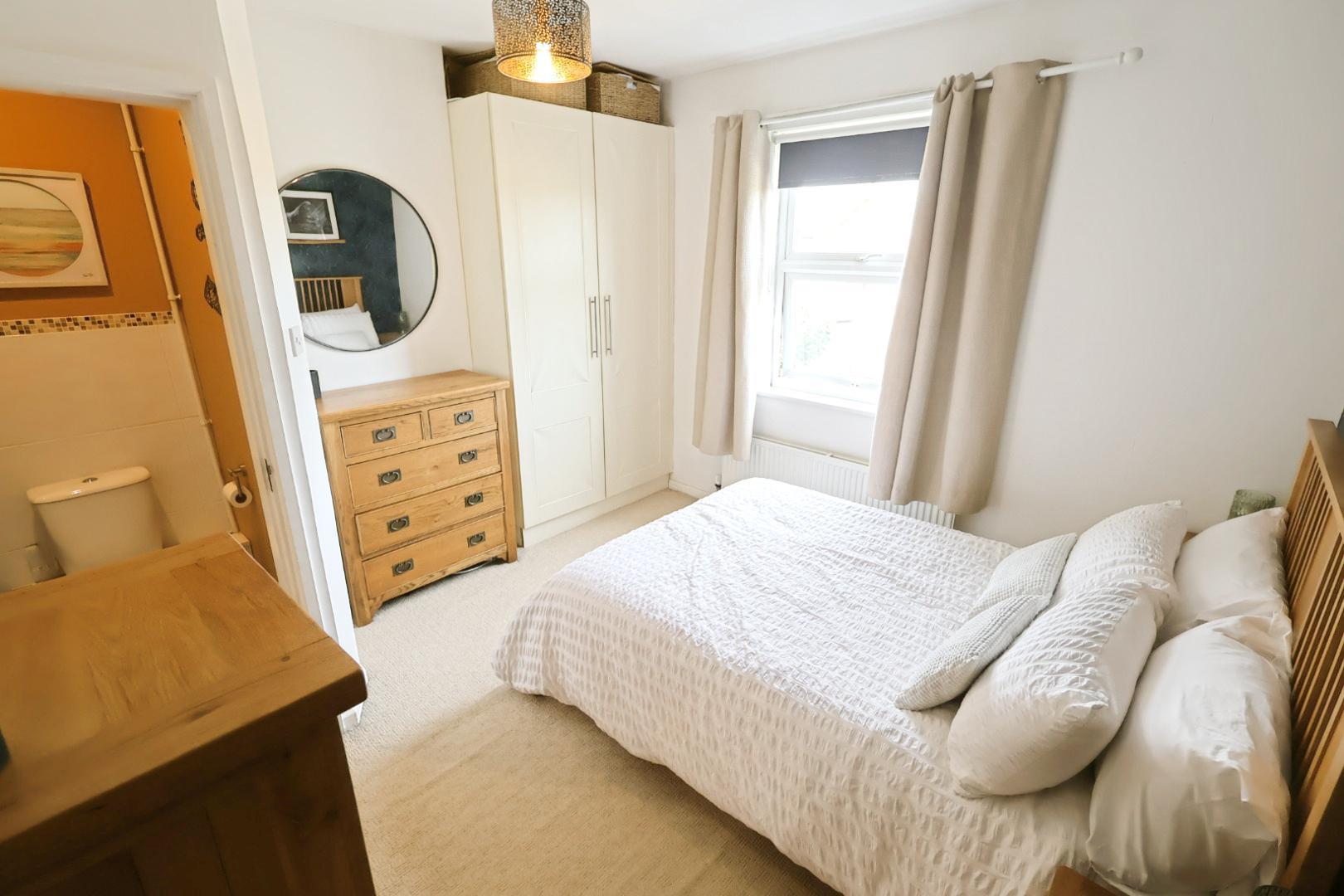 With a UPVC double-glazed window to the front elevation, radiator below, fitted double wardrobe, and door leading to the en-suite.
