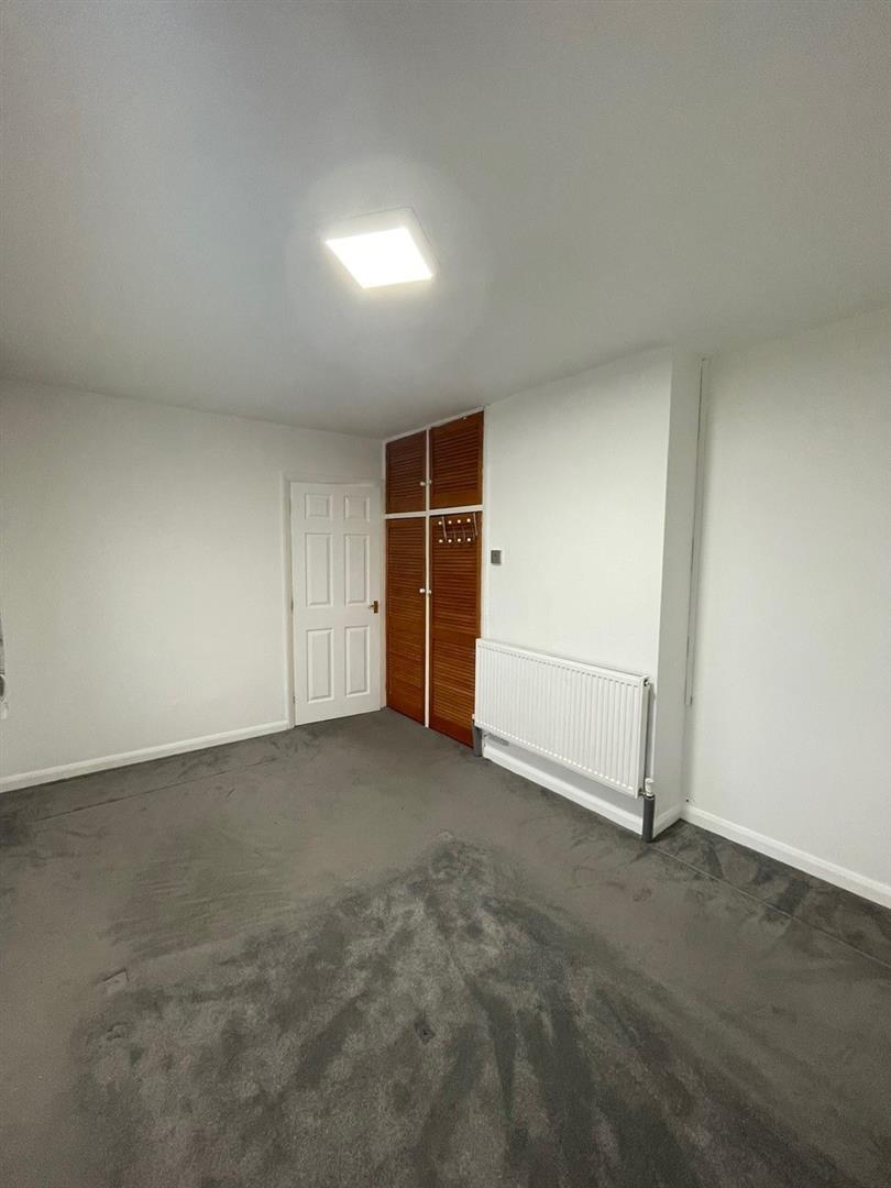 Large double bedroom ith a window to the side, radiator and built in wardrobe.