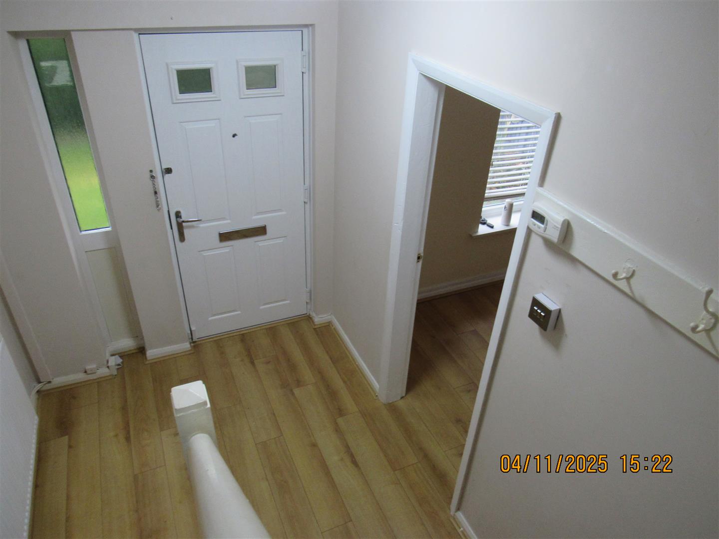 UPVC door to the front, laminate flooring, door to lounge, stairway to first floor, understairs storage area with wall mounted coat hooks