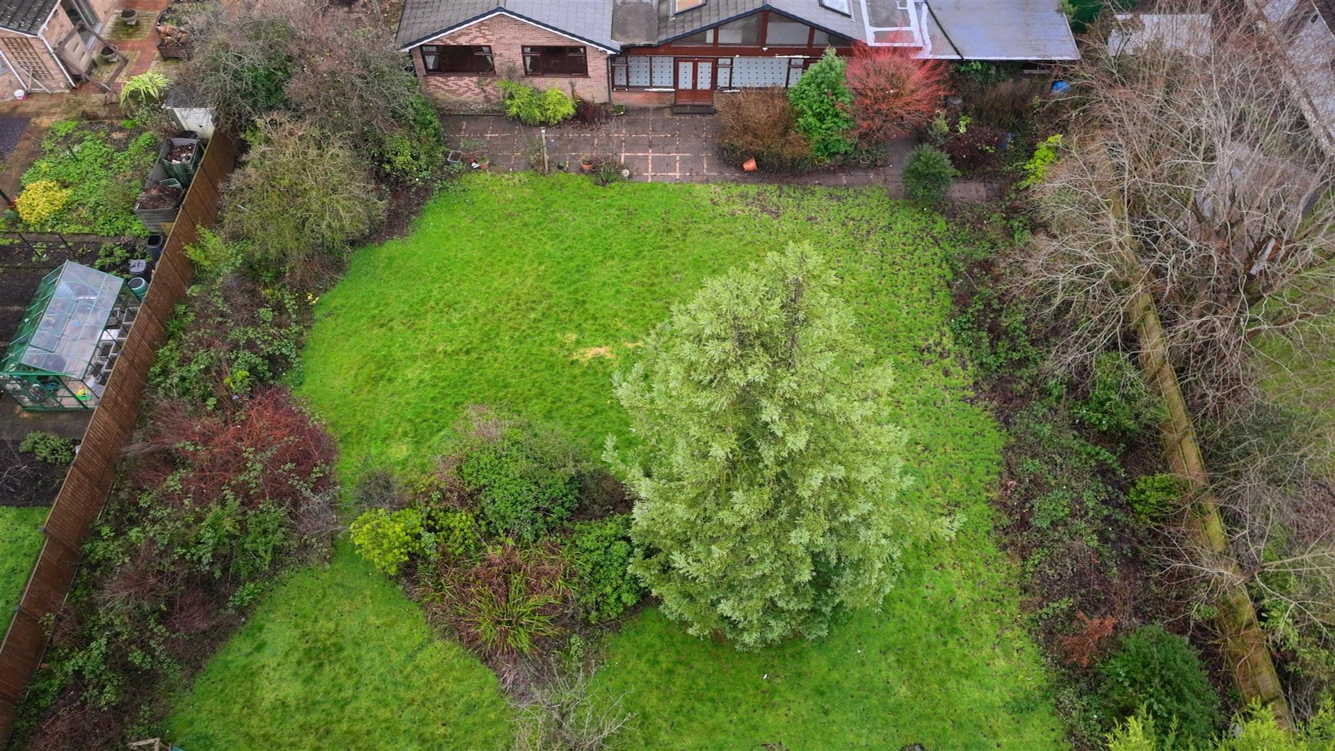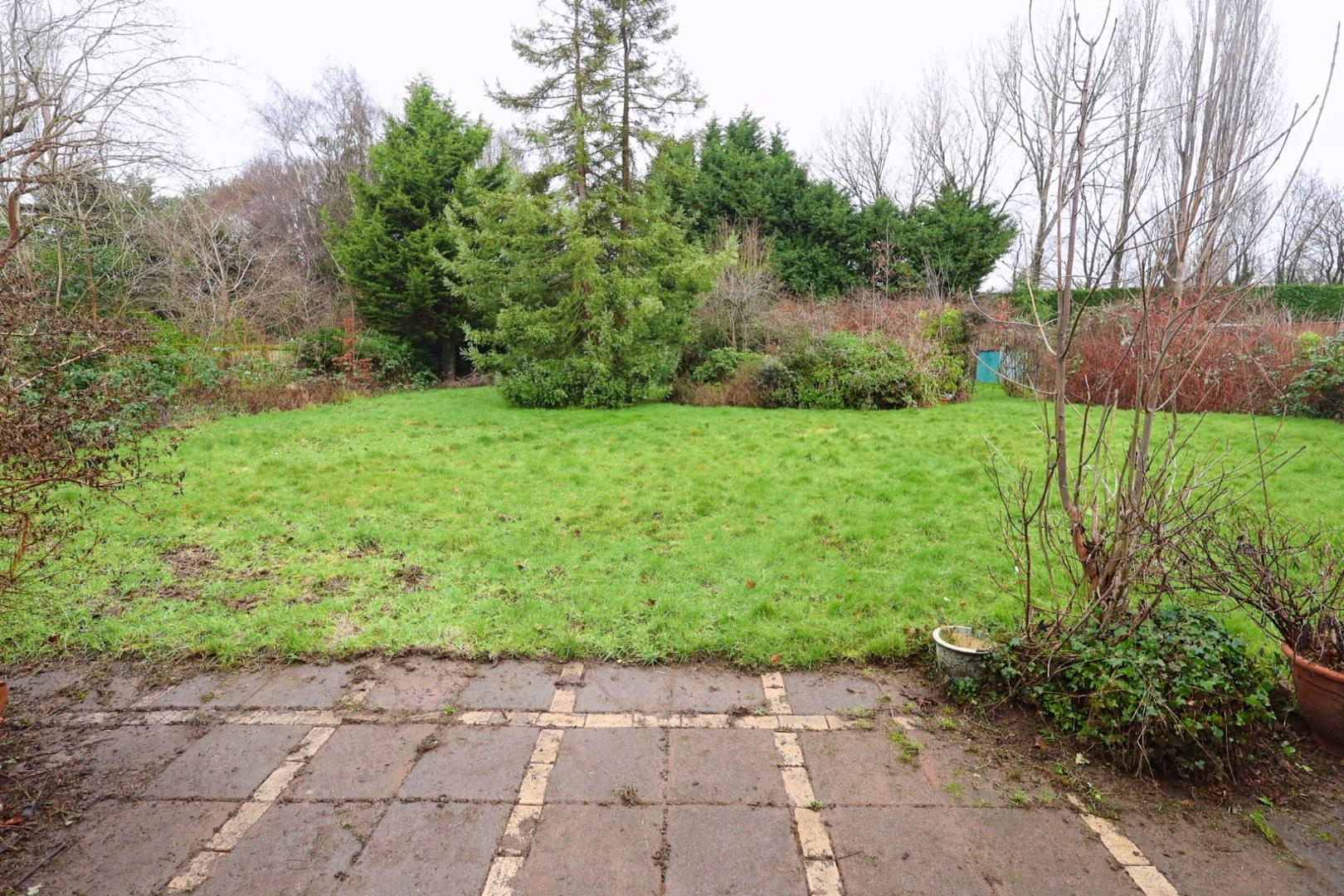 A substantial rear garden featuring a paved patio area, laid lawn, and an abundance of mature and established plants, shrubs, and trees. There is also a paved courtyard area accessed from the utility room, with external lighting and water supply.