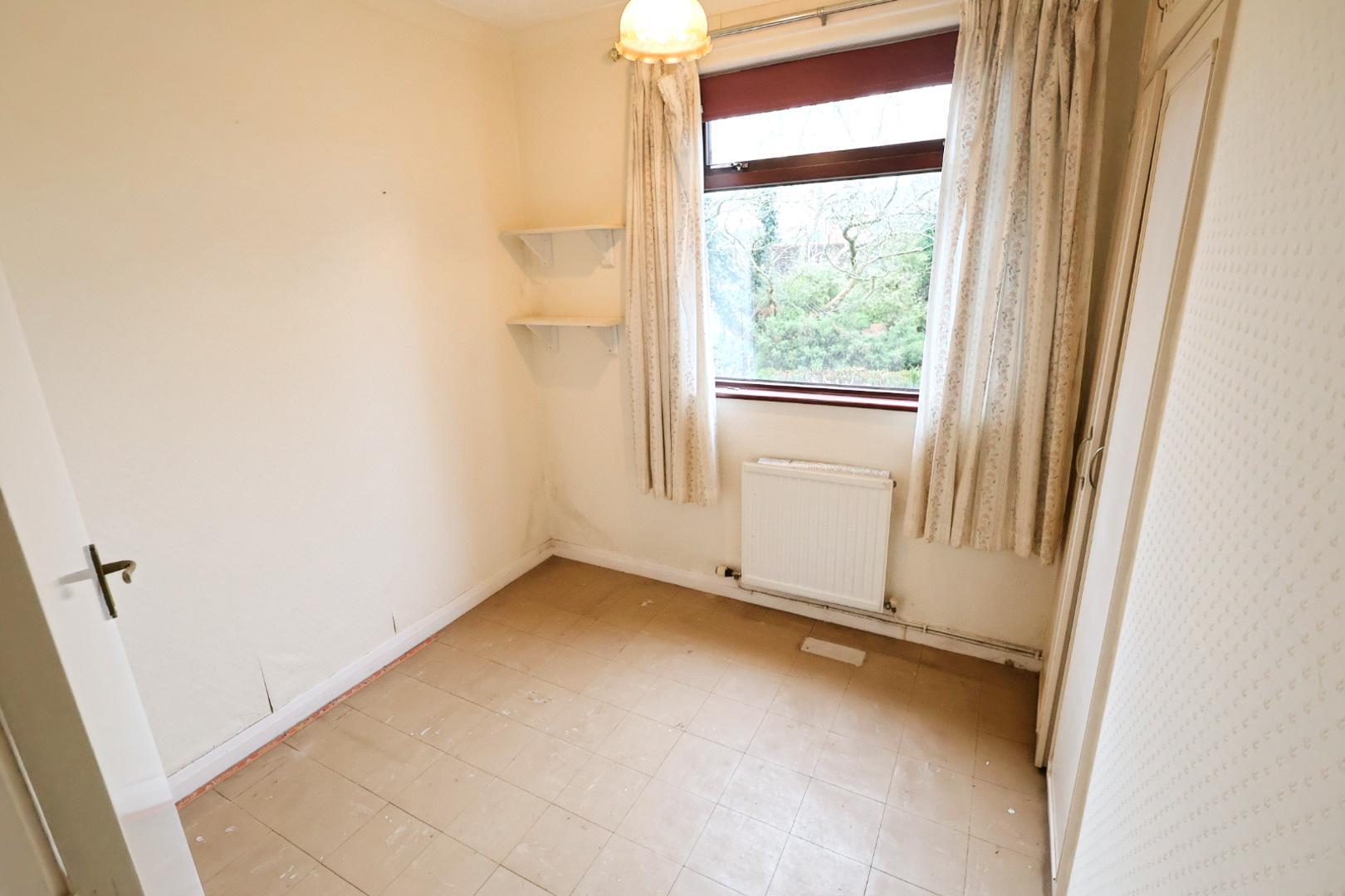 Double glazed windows to the side and front elevations, radiator, partially tiled walls, built-in shelved storage cupboards, and door opening into the utility room.