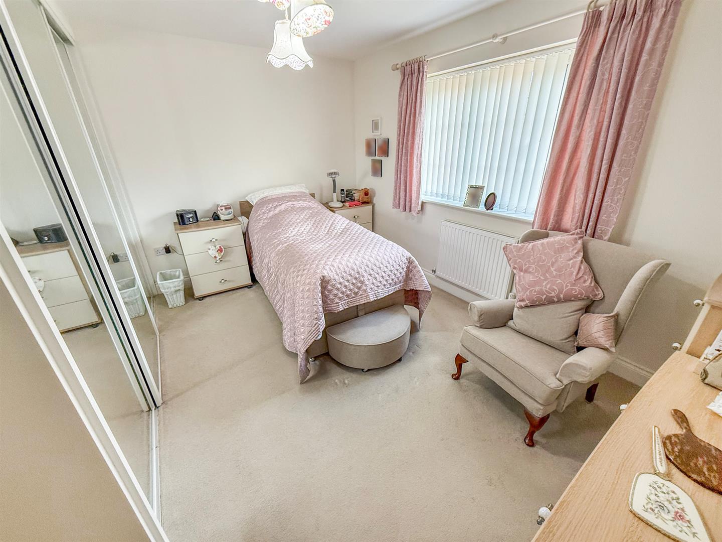 The first good sized double bedroom has a window to the rear, radiator and mirrored built in wardrobes.