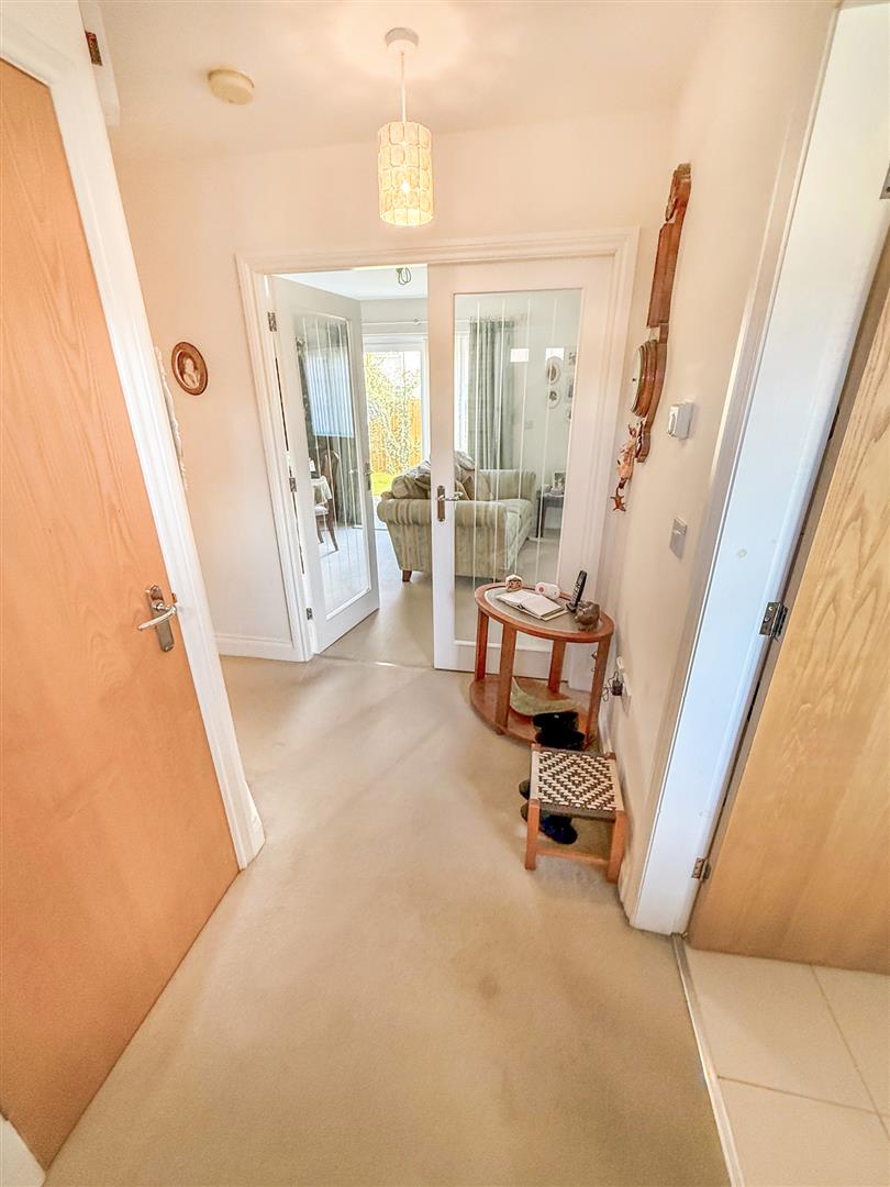 The property is accessed via a door to the front with side panel into the hallway with two built in cupboards/ cloaks, access to the loft space via hatch with light switch located on the wall and radiator. Doors leading to all rooms and double doors into the lounge.