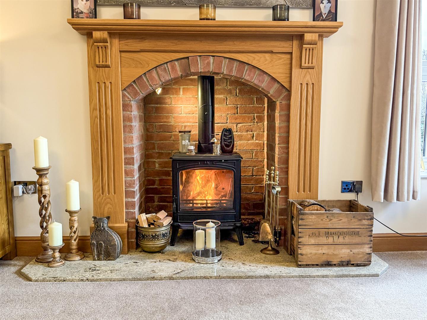 This large, well presented, bright living room is a great place to relax and has a feature fireplace with granite hearth and wood surround with log burner inset, under flooring, coved ceilings and wall lights. TV point and uPVC double glazed window to the rear over looking the rear garden leading through to the garden room.