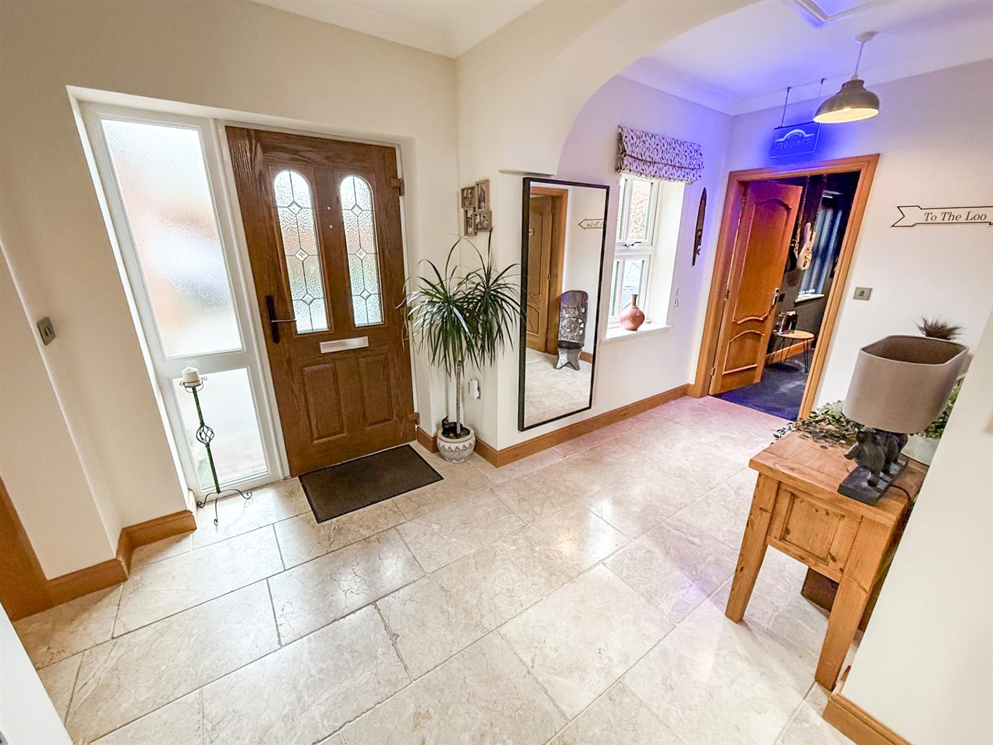 The property is accessed via a pillard entrance porch and through uPVC wood effect, part glazed door with an glass side screen to one side into;