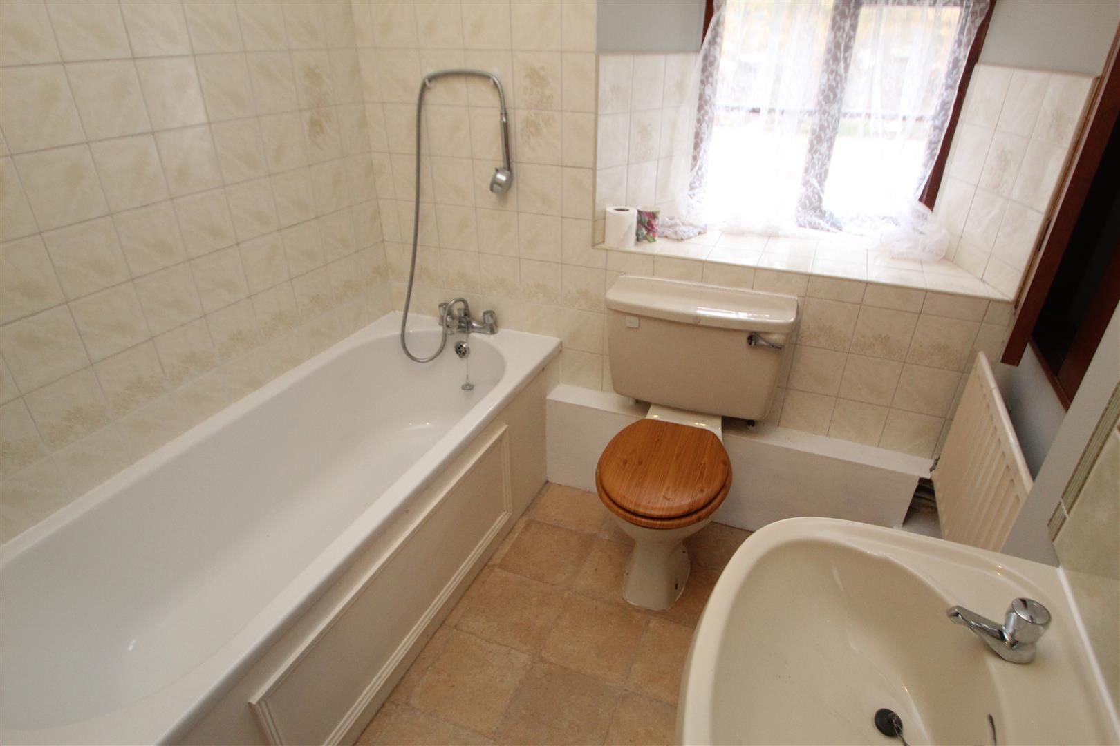 Fitted with a three-piece suite with a panelled bath, shoer cubicle with electric shower, low level w.c., wash hand basin and a window to the rear.