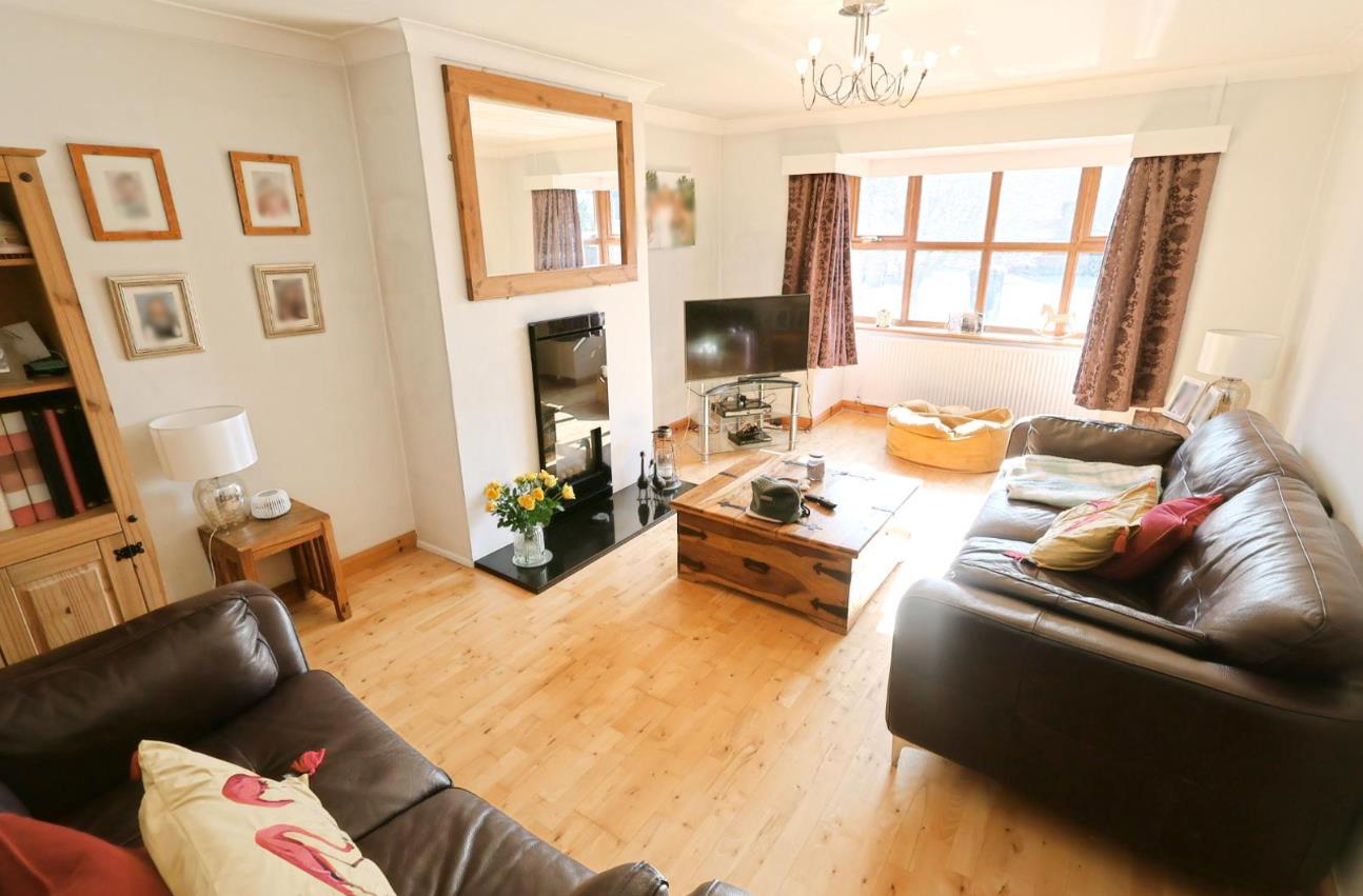 Having a continuation of the light oak-style flooring from the entrance hall, the living room features a bay window to the front elevation, a radiator, and a contemporary coal-effect living flame gas fire with granite hearth.